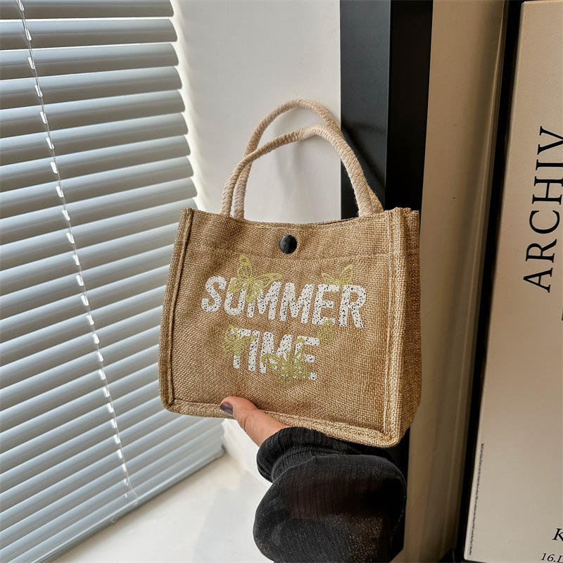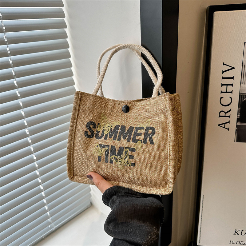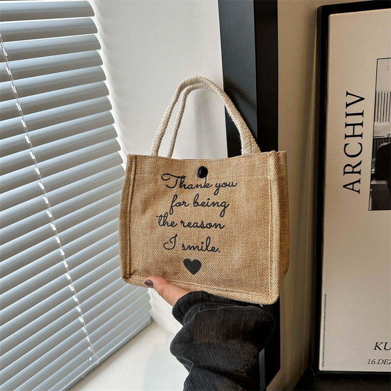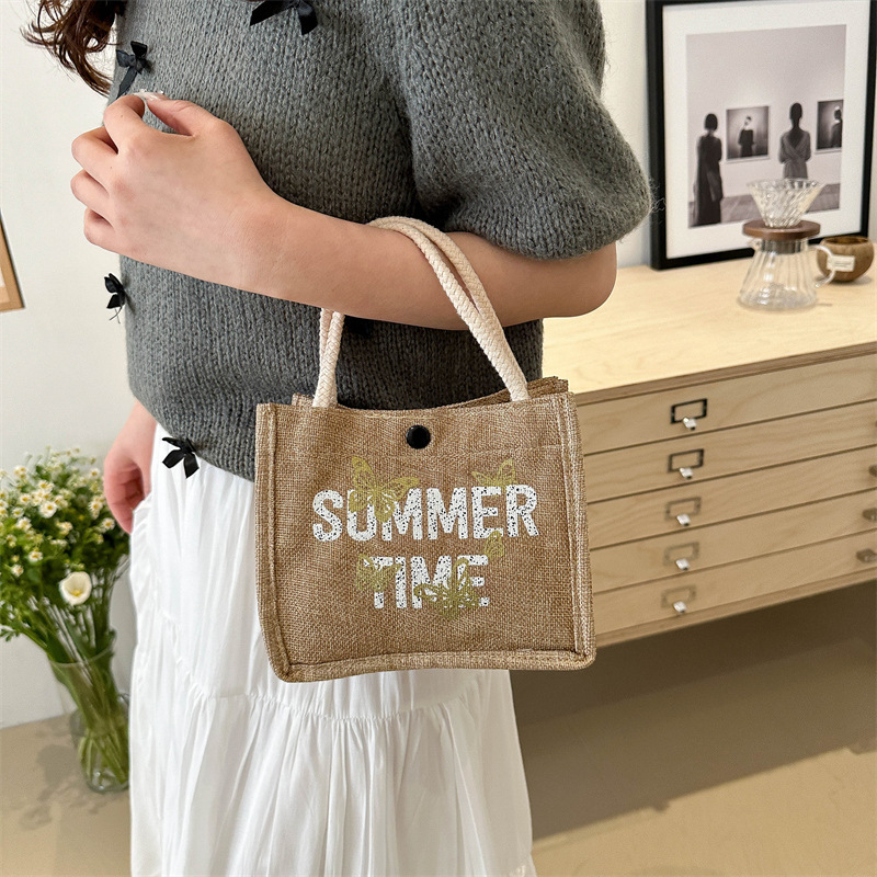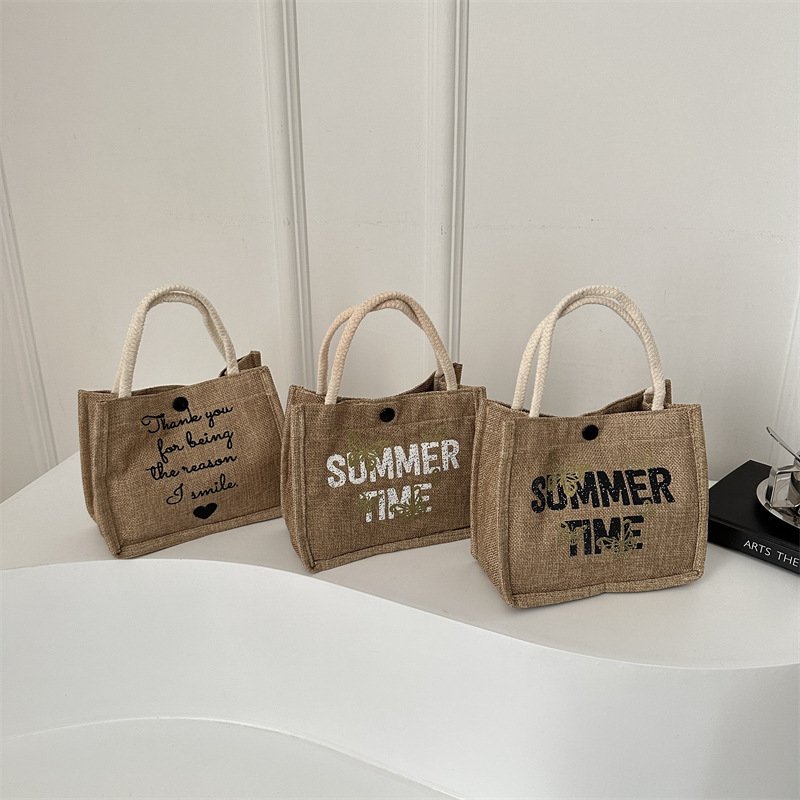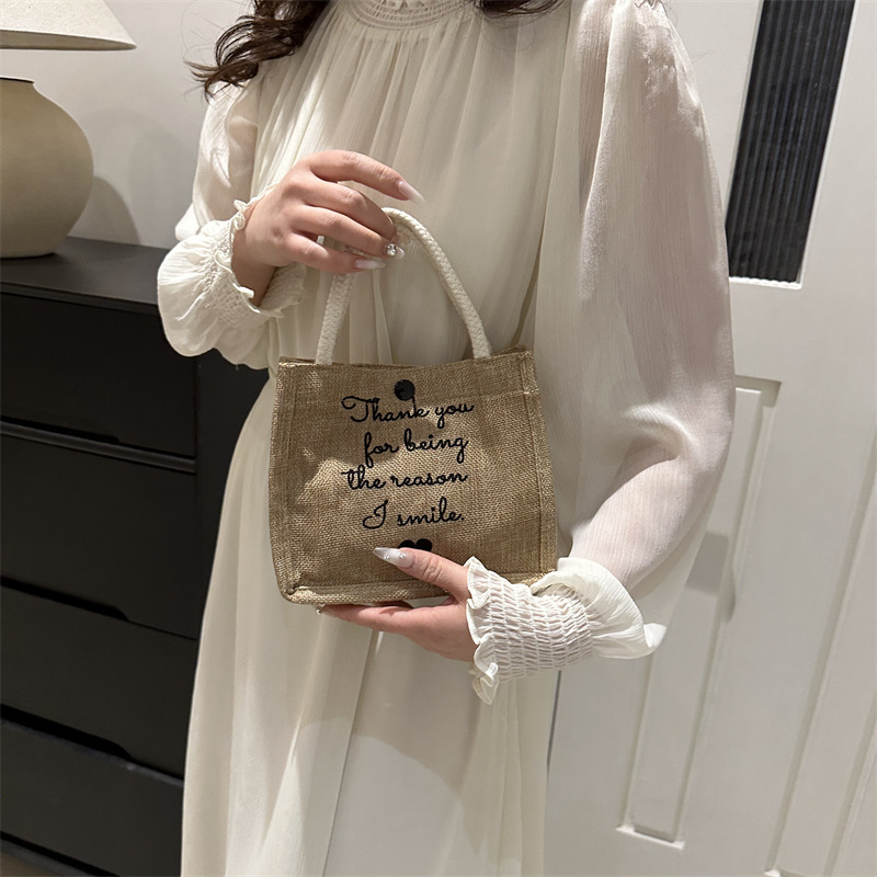 亚麻布手提袋简约文艺麻布包包休闲学生小众设计感原创上班族女包
