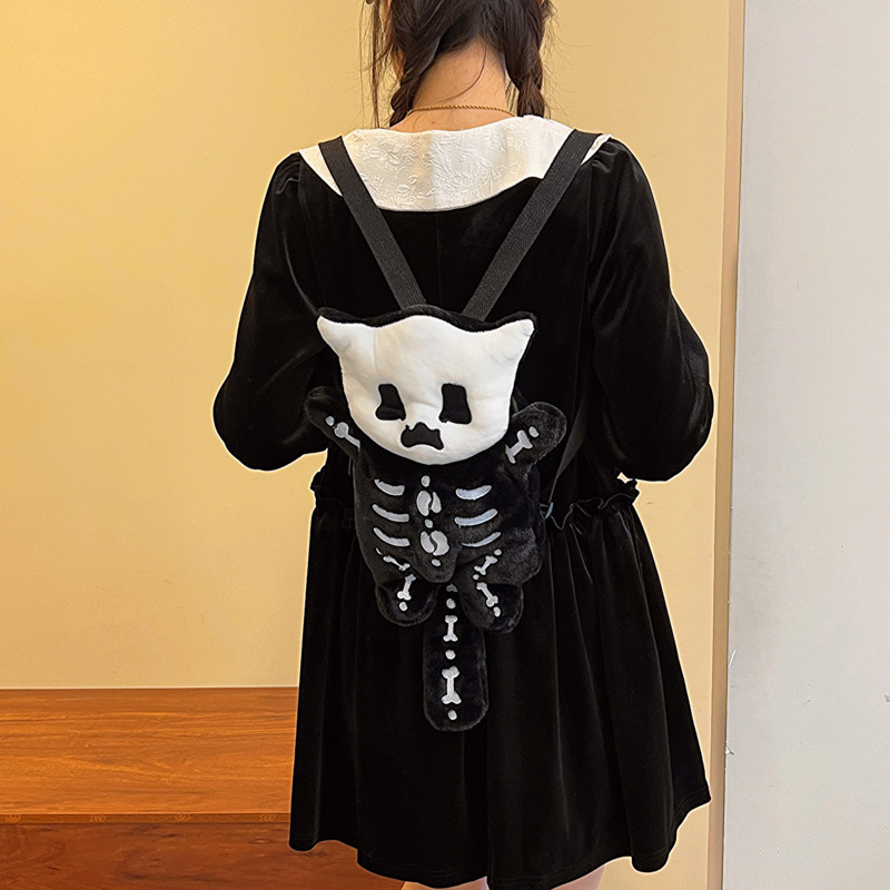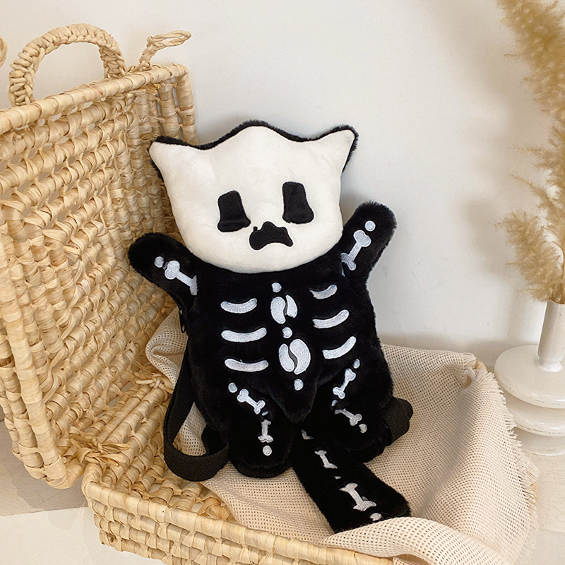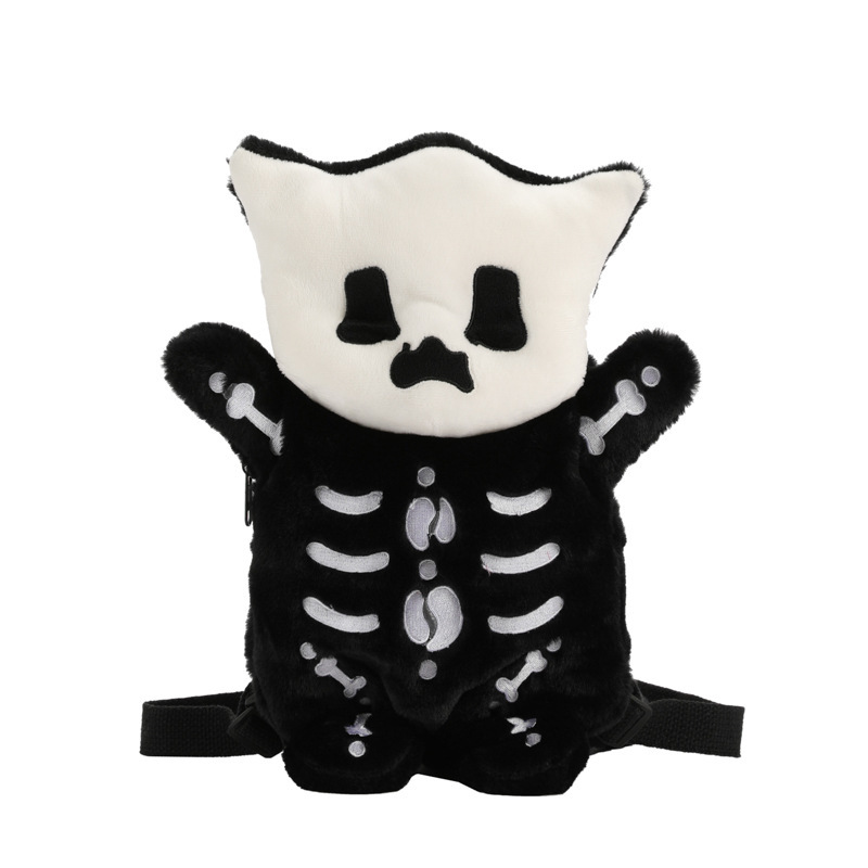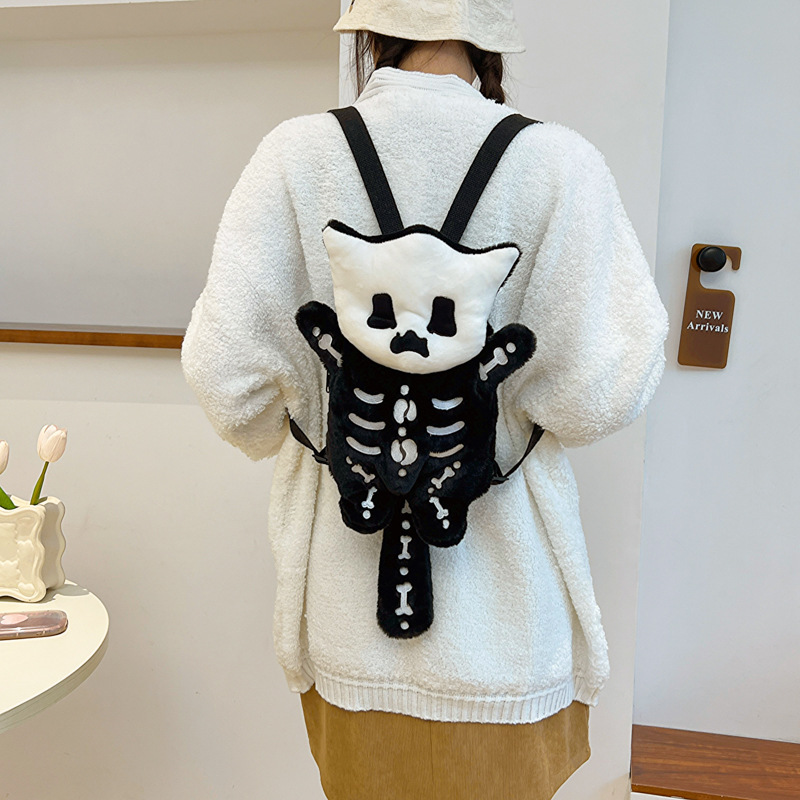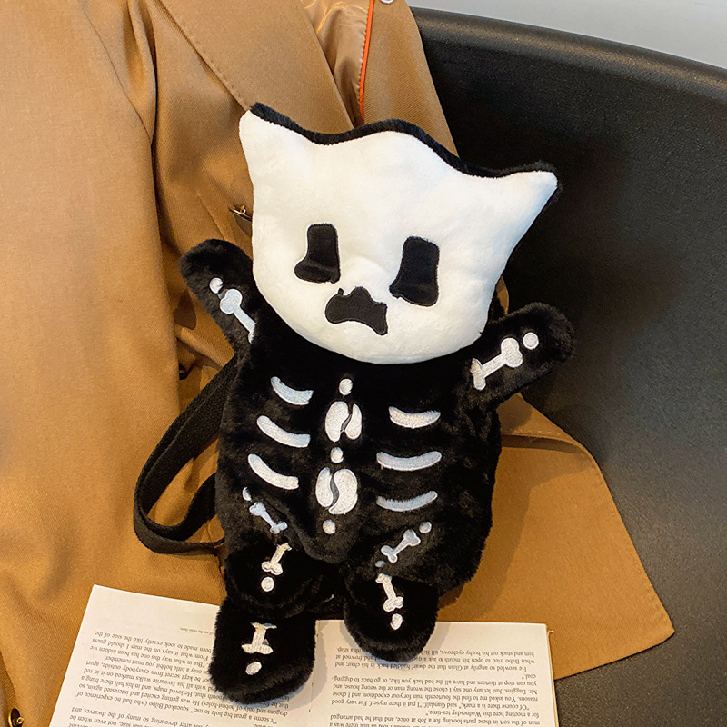 搞怪毛绒双肩包黑色小鬼骷髅头单肩包精致毛绒包高级感小恶魔猫咪