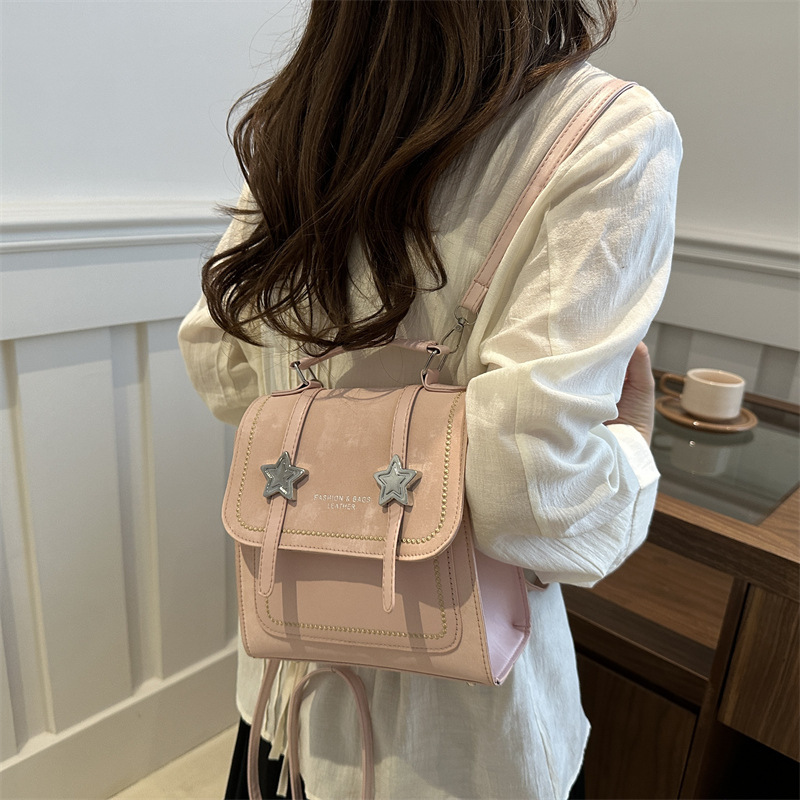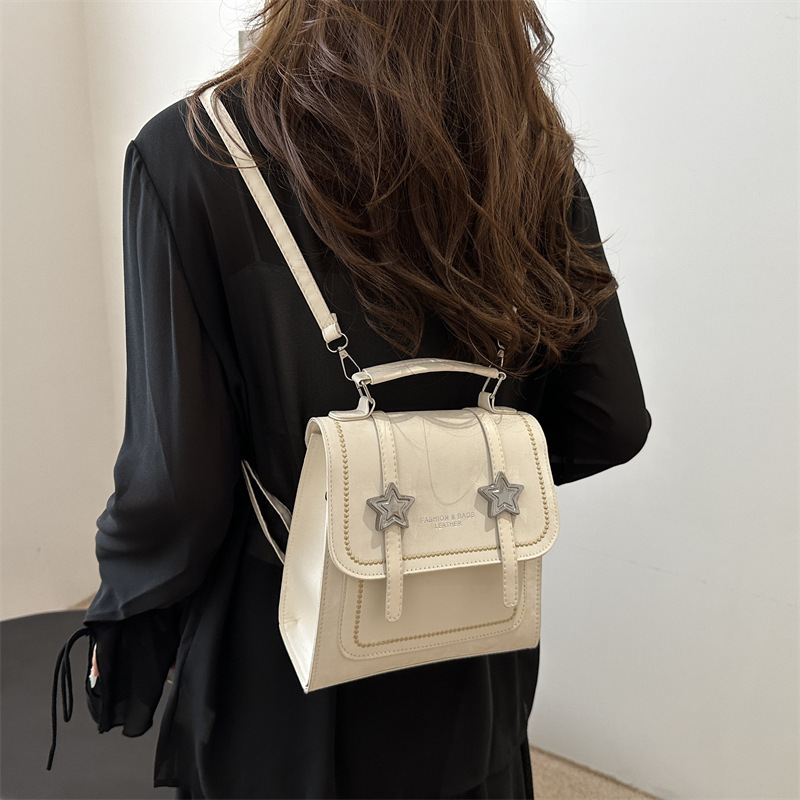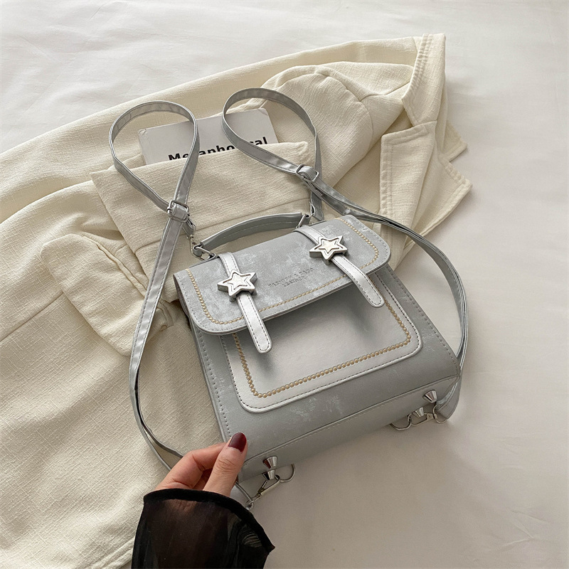 洋气小众银色女双肩包新款百搭学生小书包出游旅行迷你后背包