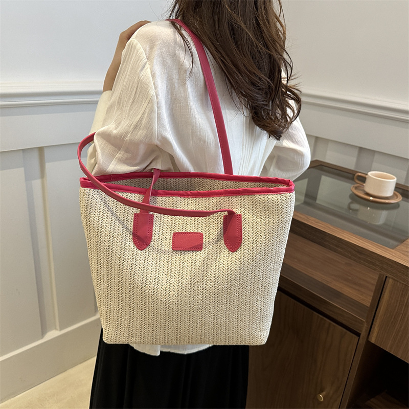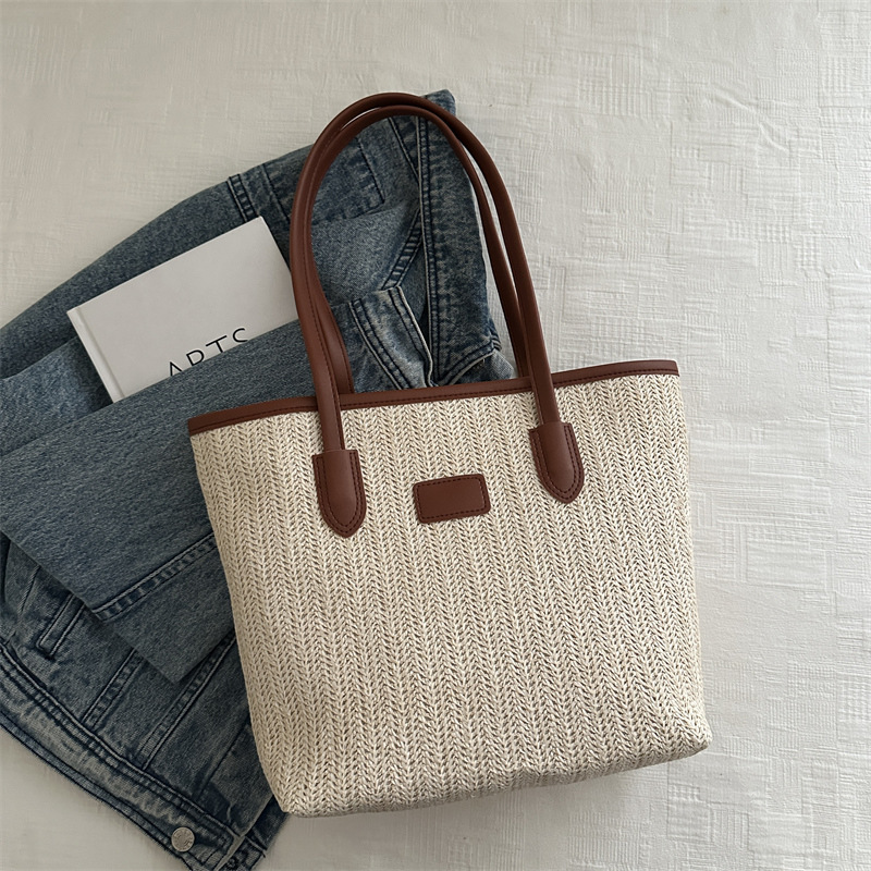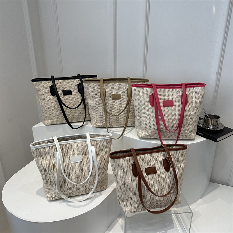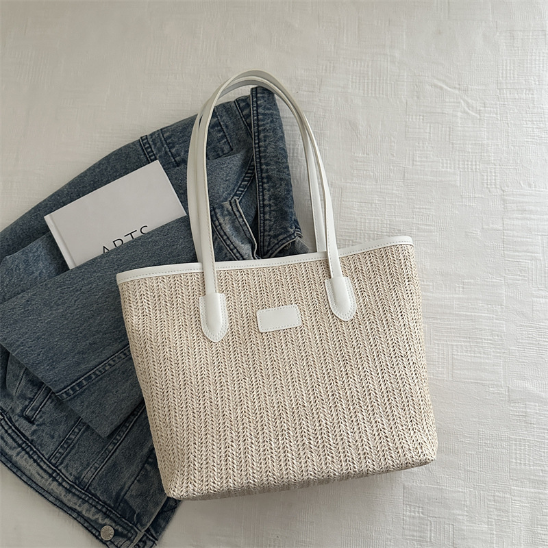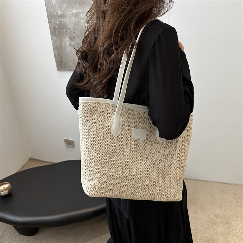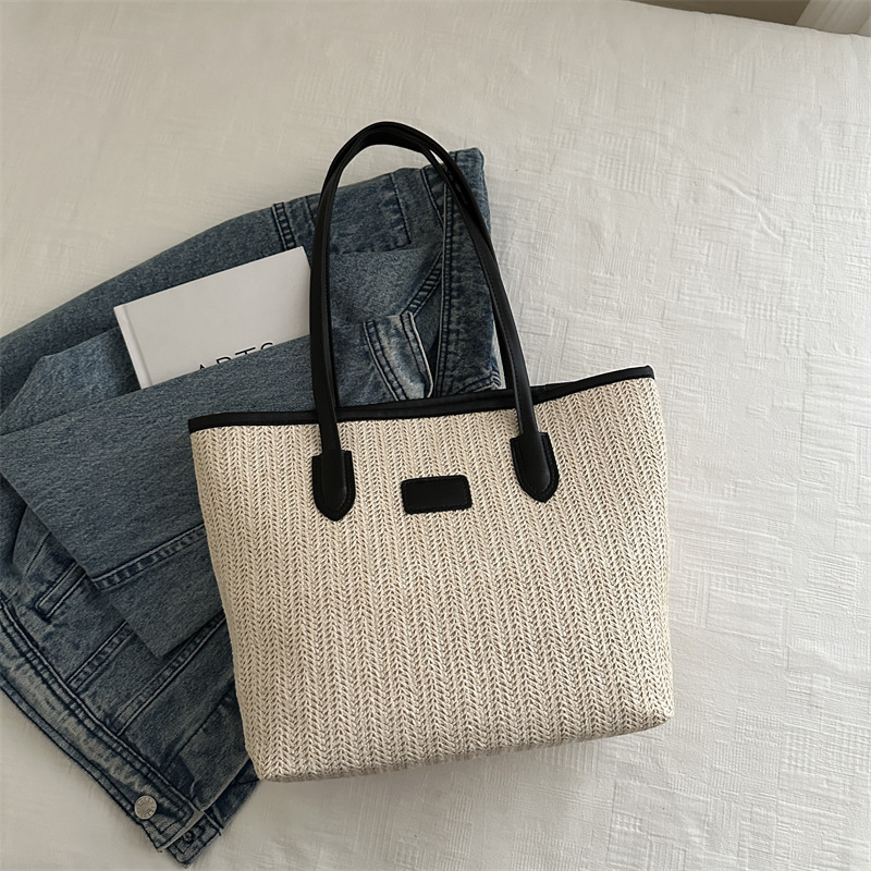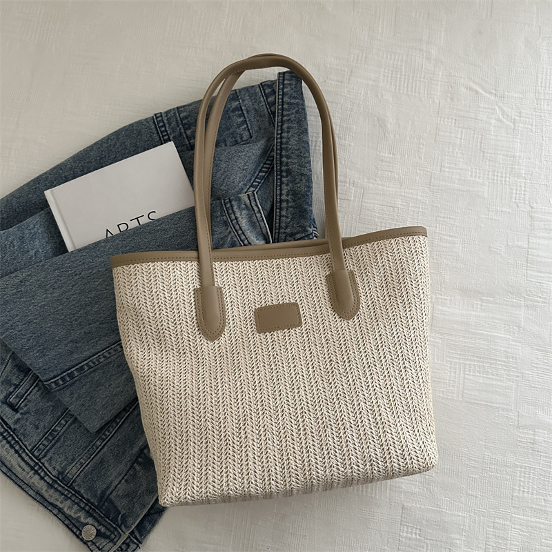 通勤大容量草编包包女新款时尚洋气百搭单肩包流行爆款托特包