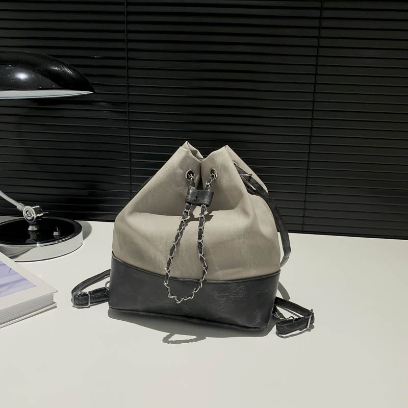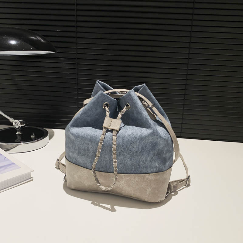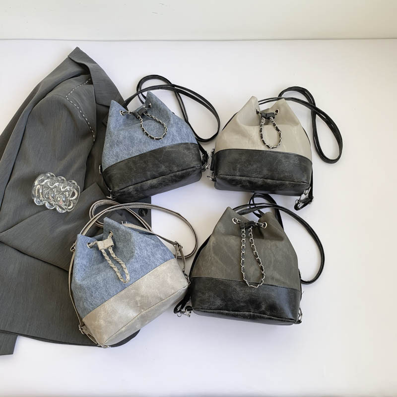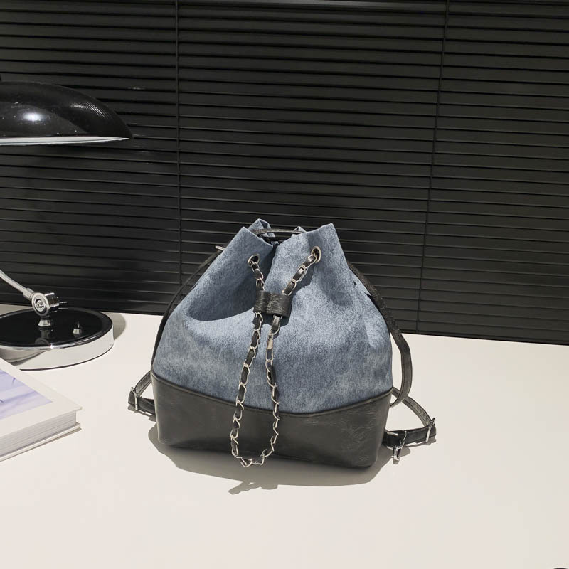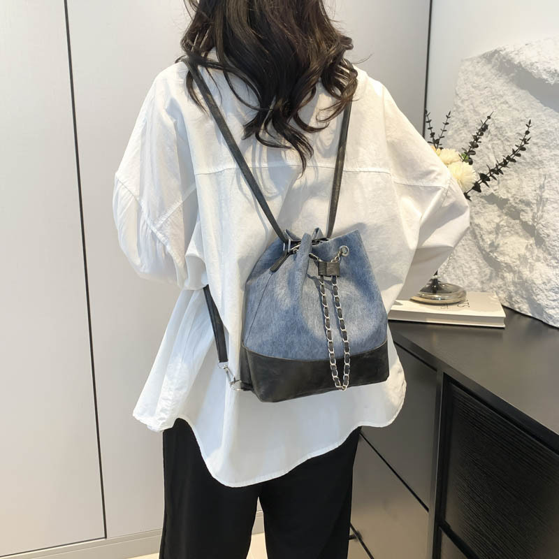 今年流行牛仔布双肩包女新款百搭后背时尚爆款单肩斜挎水桶包