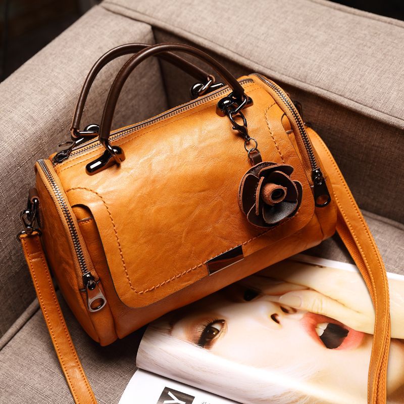 真皮女包新款潮复古百搭牛皮手提时尚单肩斜挎枕头大包波士顿