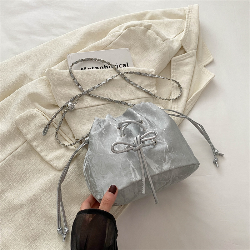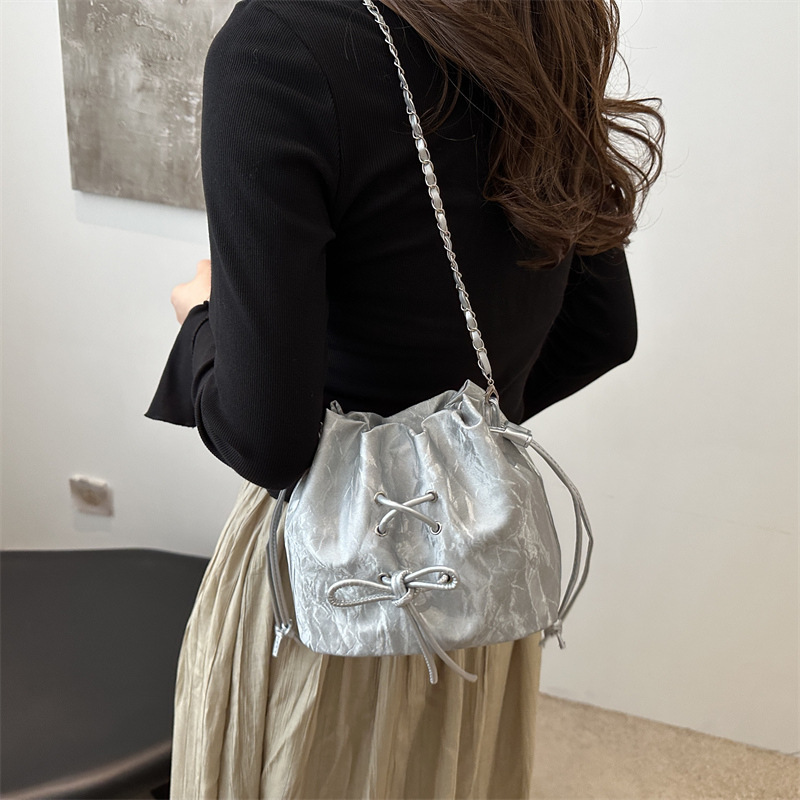 单肩小包包女新款时尚蝴蝶结链条包夏天洋气水桶包通勤腋下包