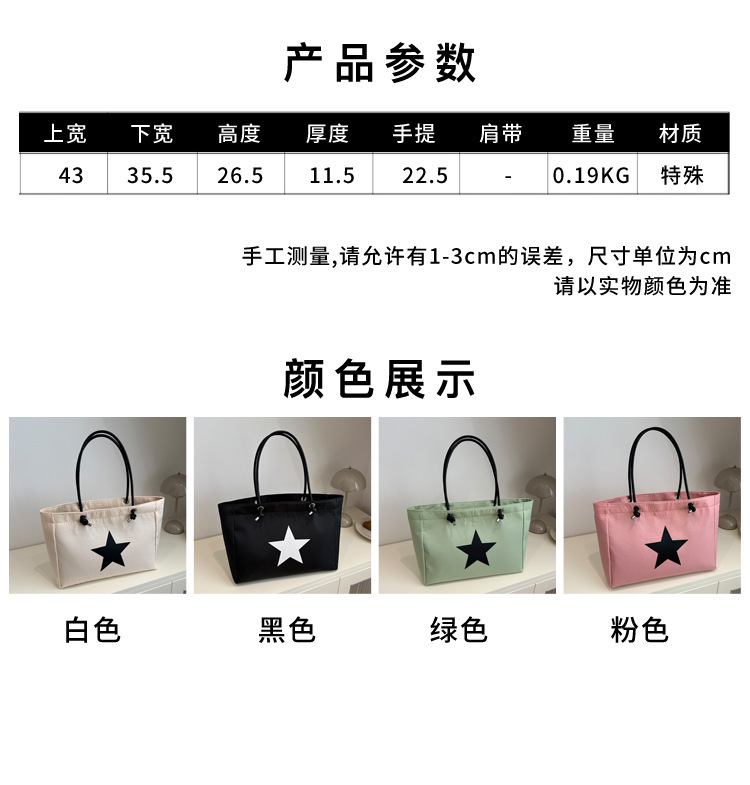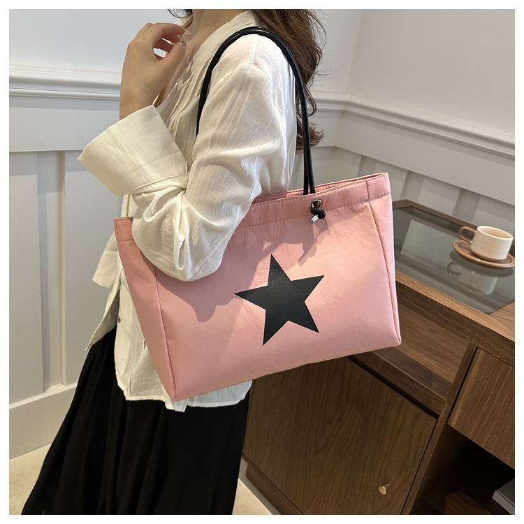 单肩包女上课大学生新款五角星手提单肩包通勤包大容量托特包