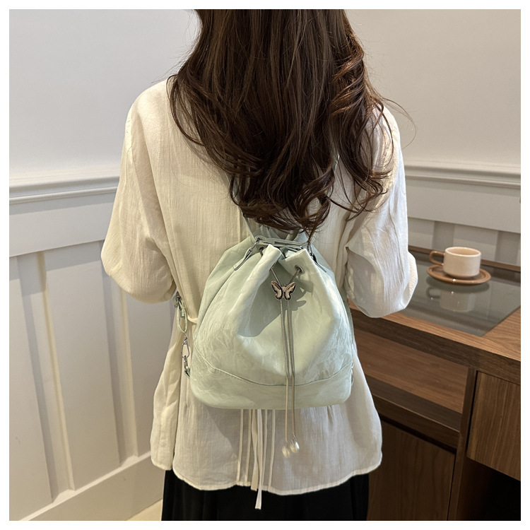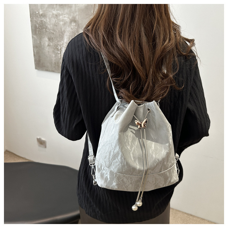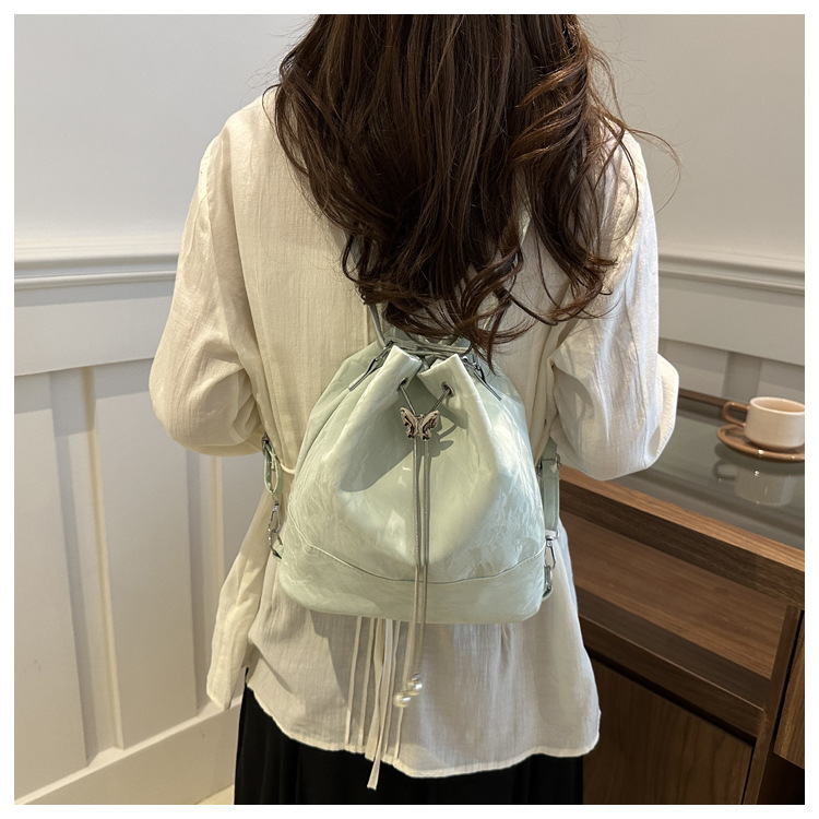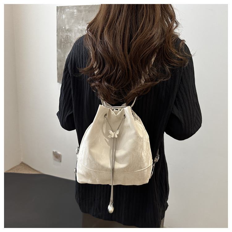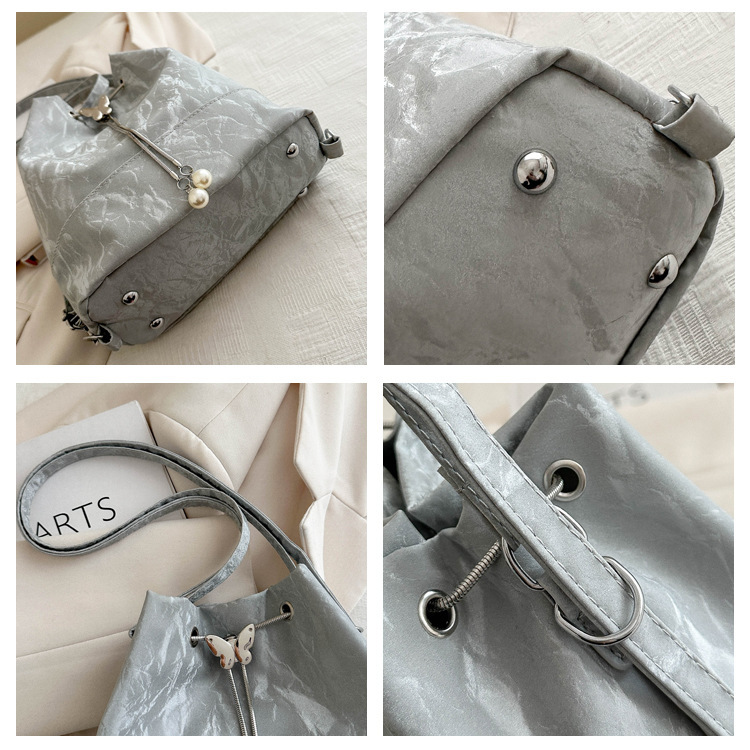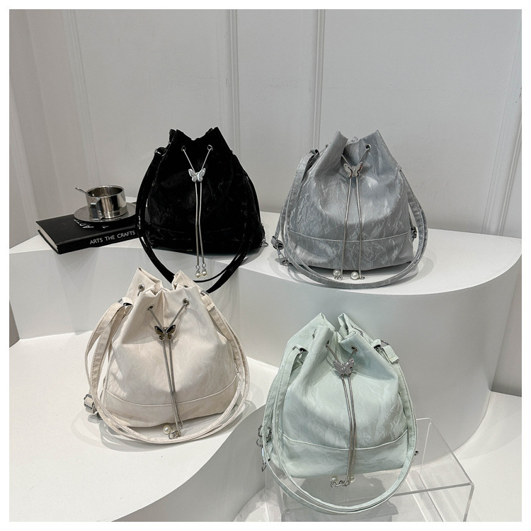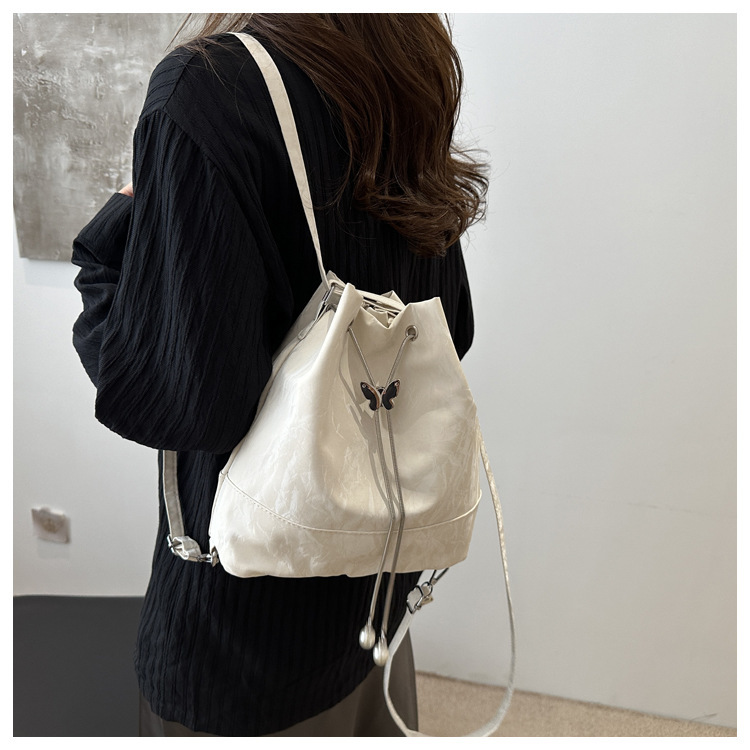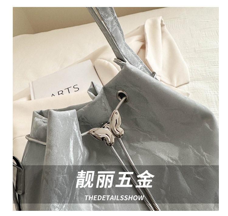 小众设计抽绳水桶包新款时尚百搭单肩斜挎包女大容量小背包潮