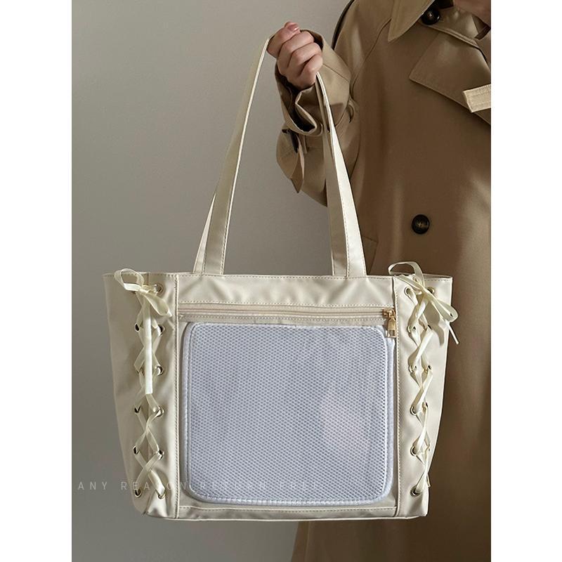 大容量包包女新款蝴蝶结系带透明可爱甜美痛包通勤单肩托特包