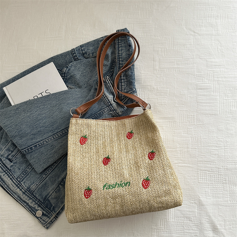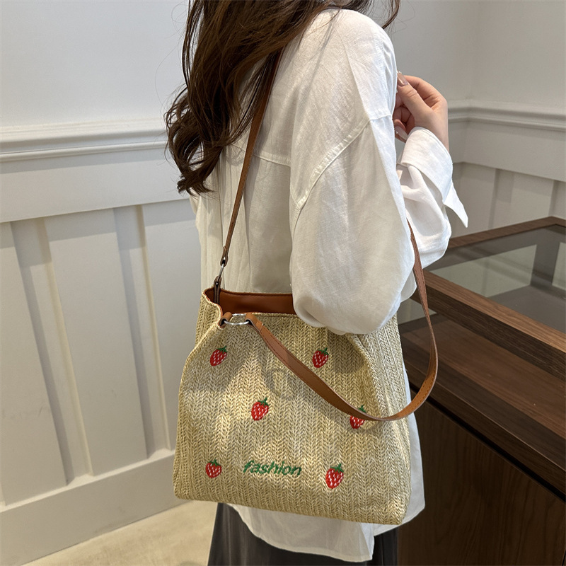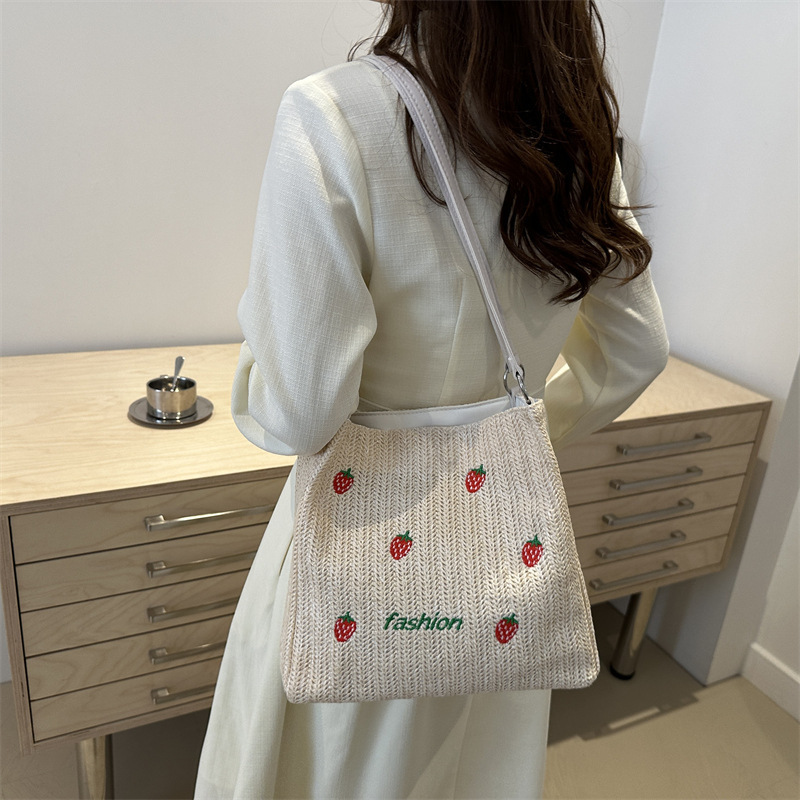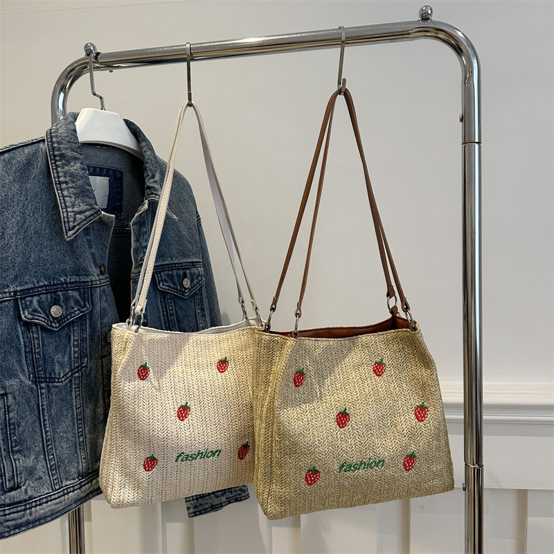 夏天草编包包女夏季新款百搭单肩手提编织包简约大容量沙滩包