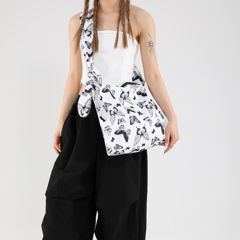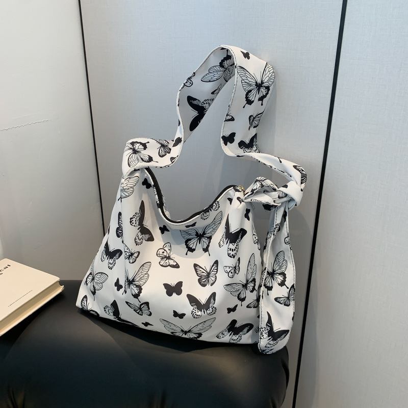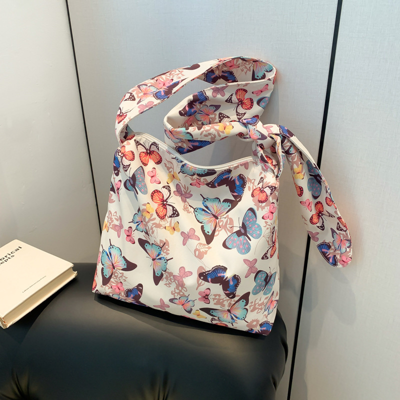 新中式尼龙包包女新款潮时尚蝴蝶托特包休闲大容量单肩腋下包