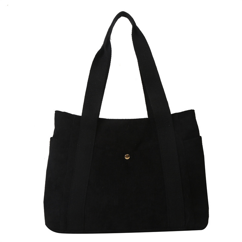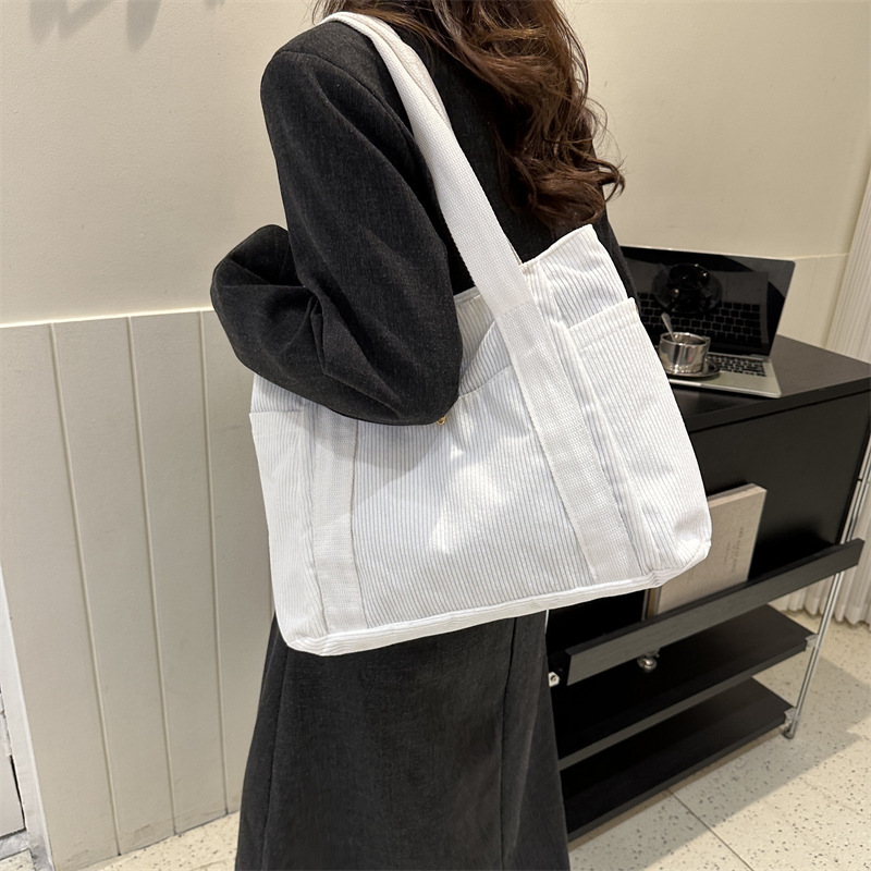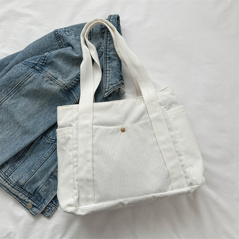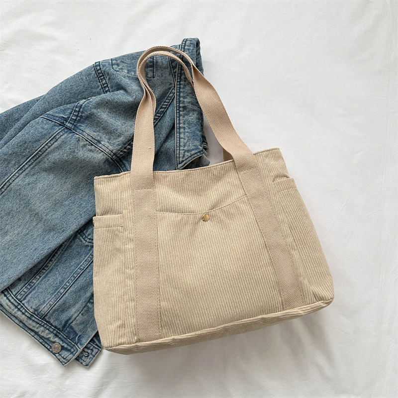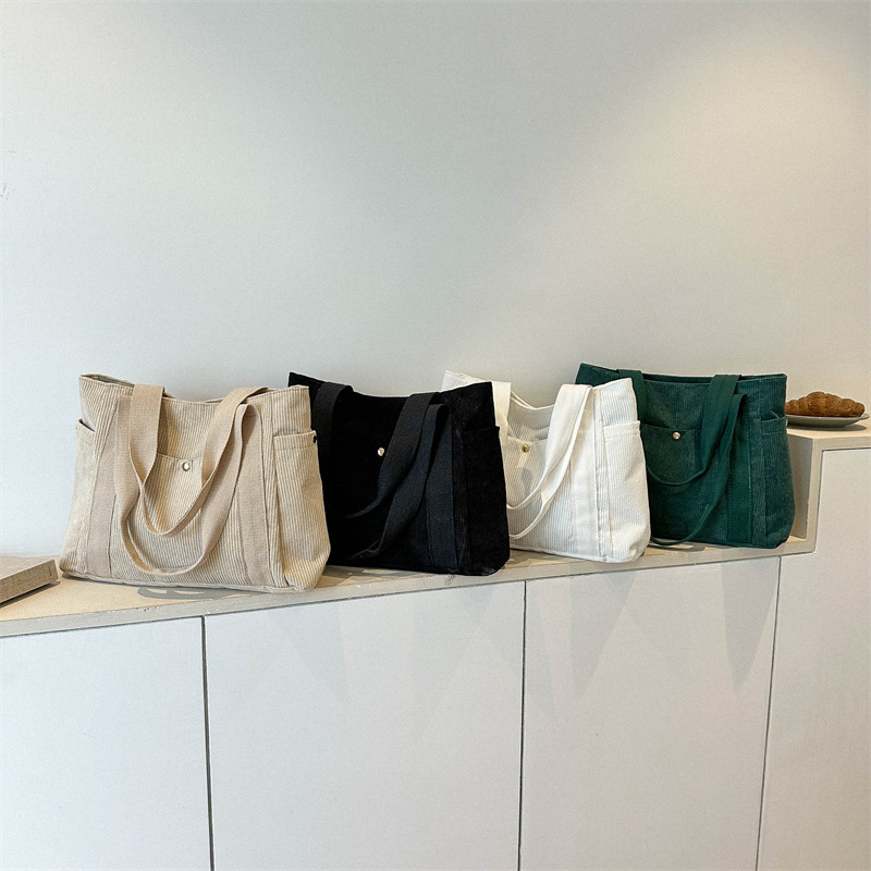 韩国ins时尚大容量条绒购物袋女休闲纯色手提大包旅行单肩包布袋