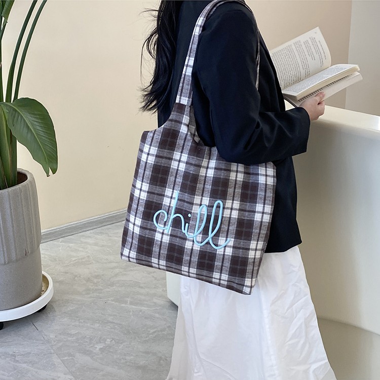 韩版新款毛呢格子单肩包少女百搭腋下包休闲大容量chill格子托特