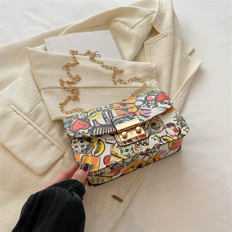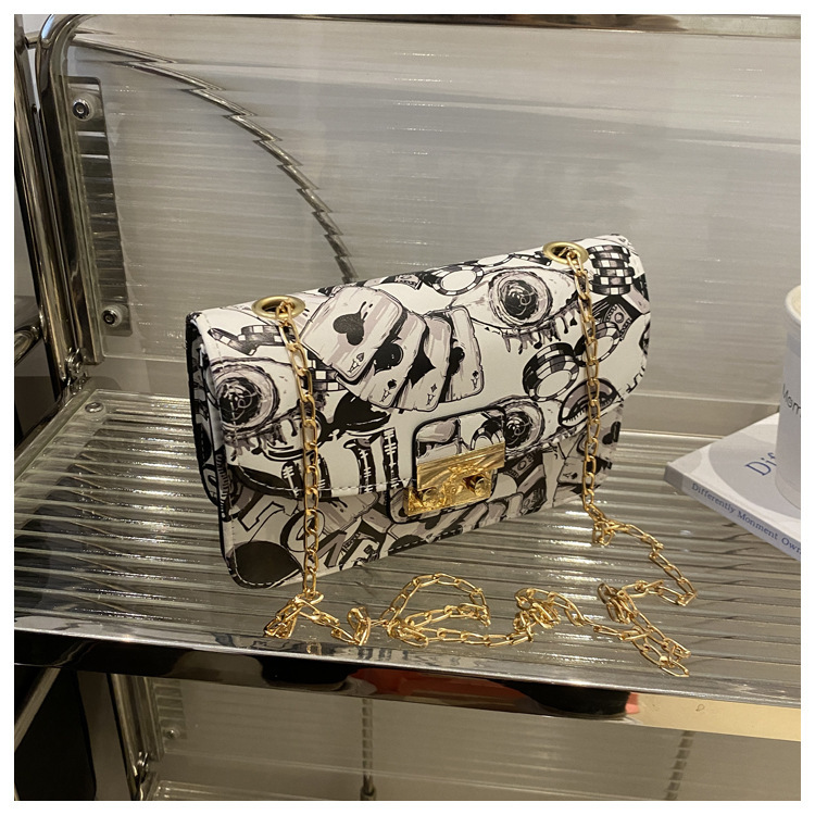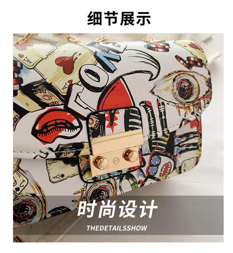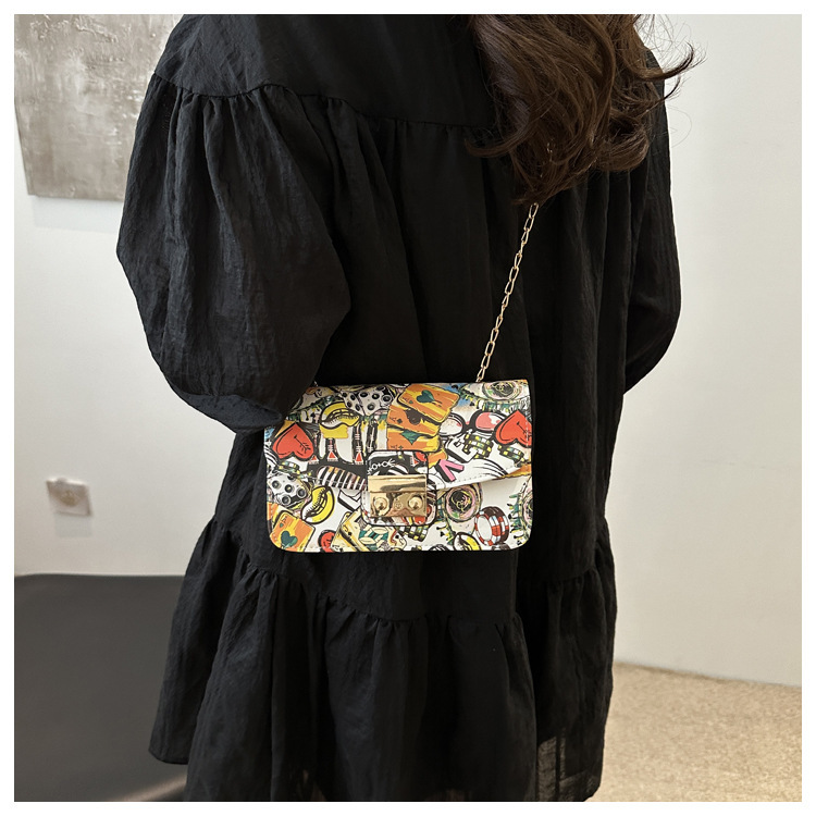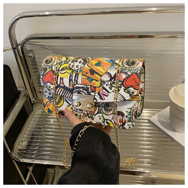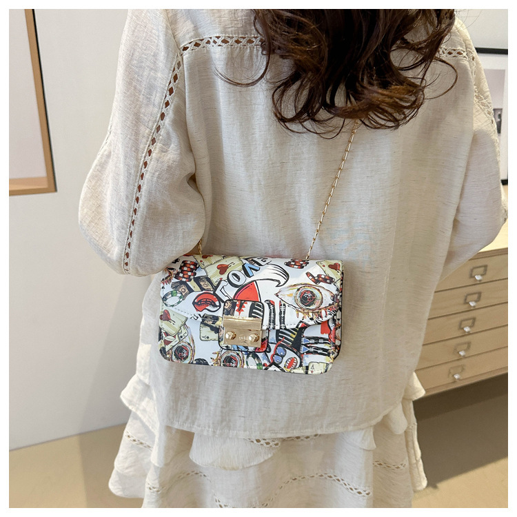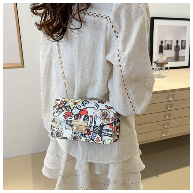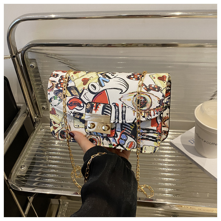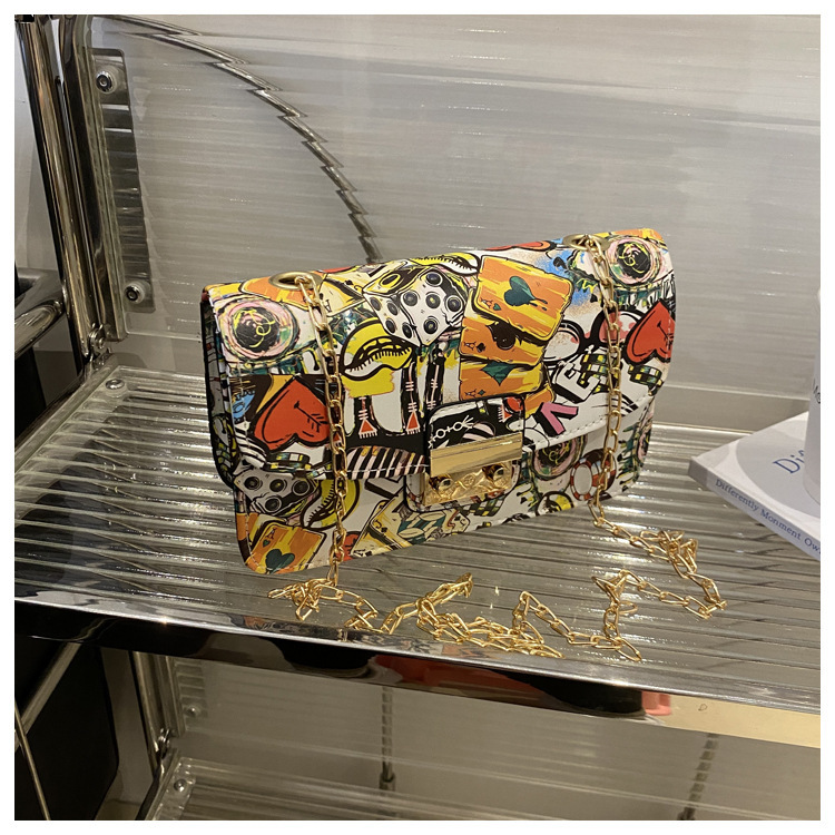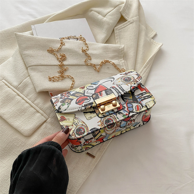 超火小众涂鸦包包女式新款流行百搭链条斜挎包时尚爆款小方包