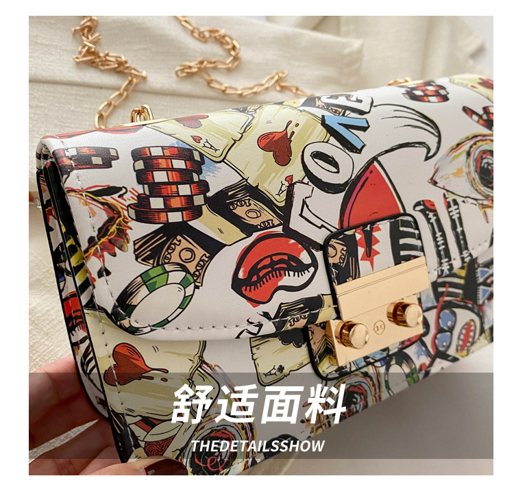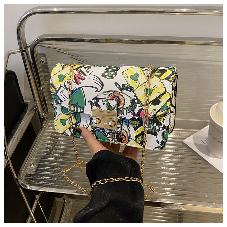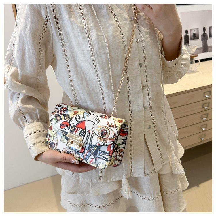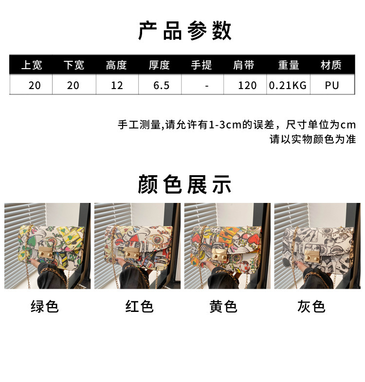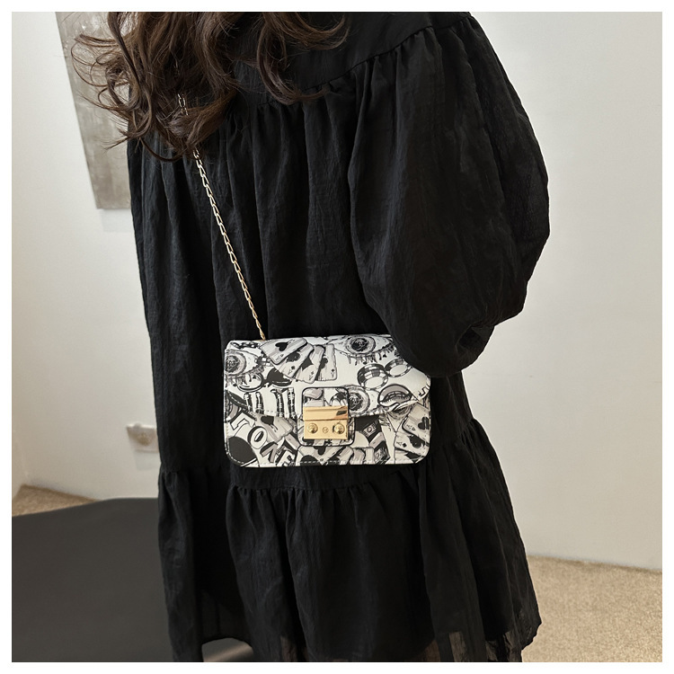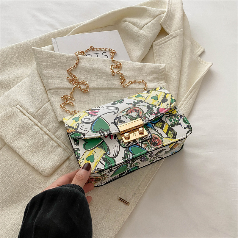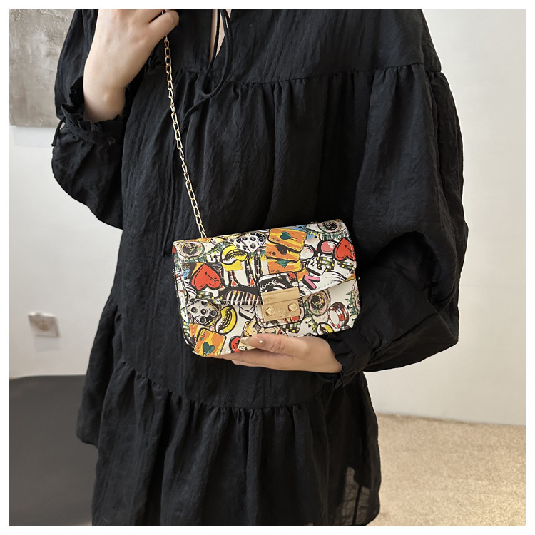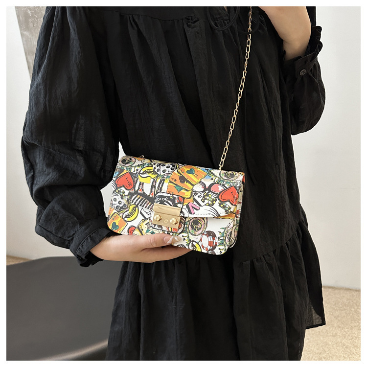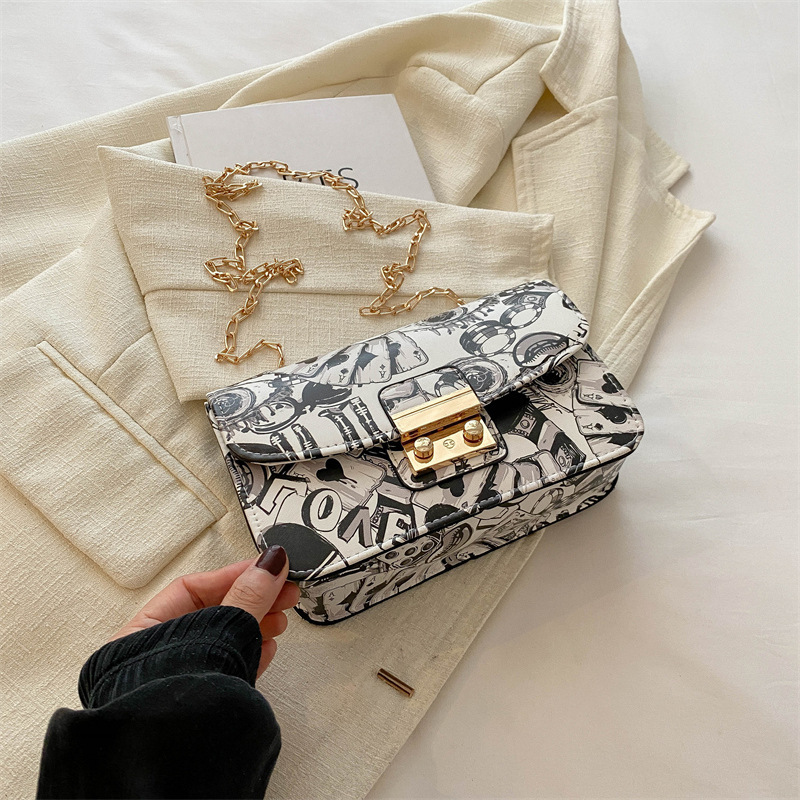 超火小众涂鸦包包女式新款流行百搭链条斜挎包时尚爆款小方包