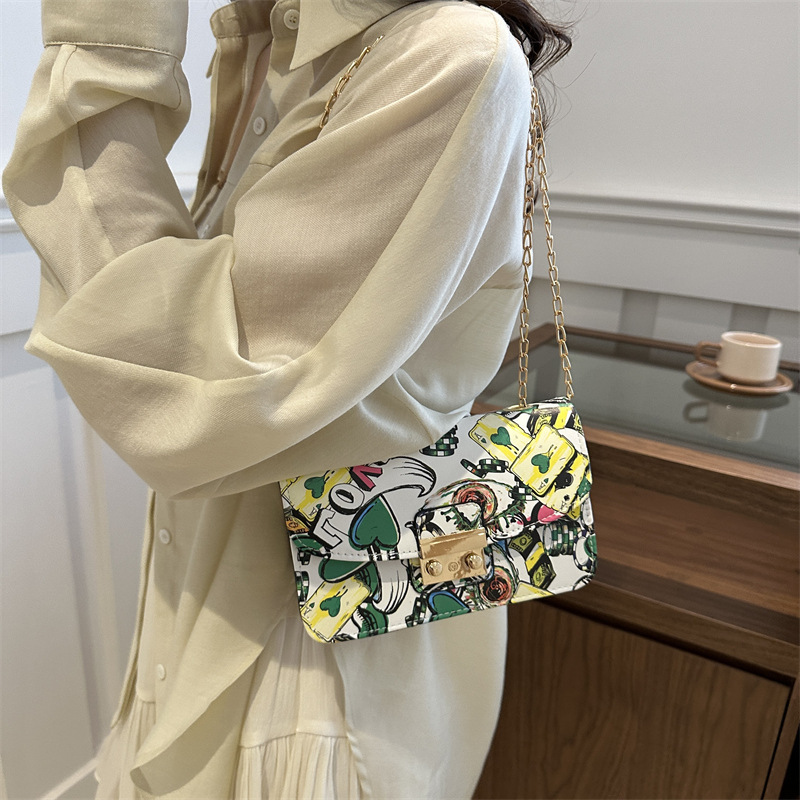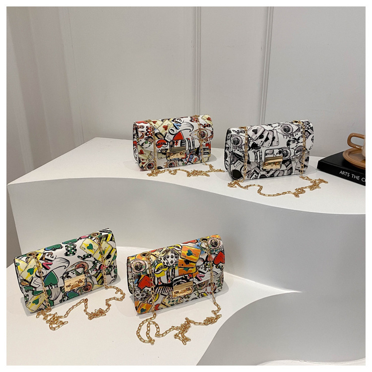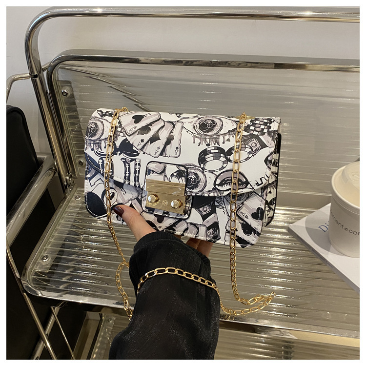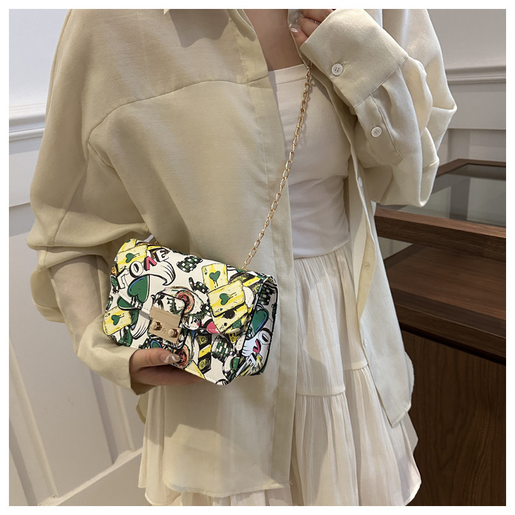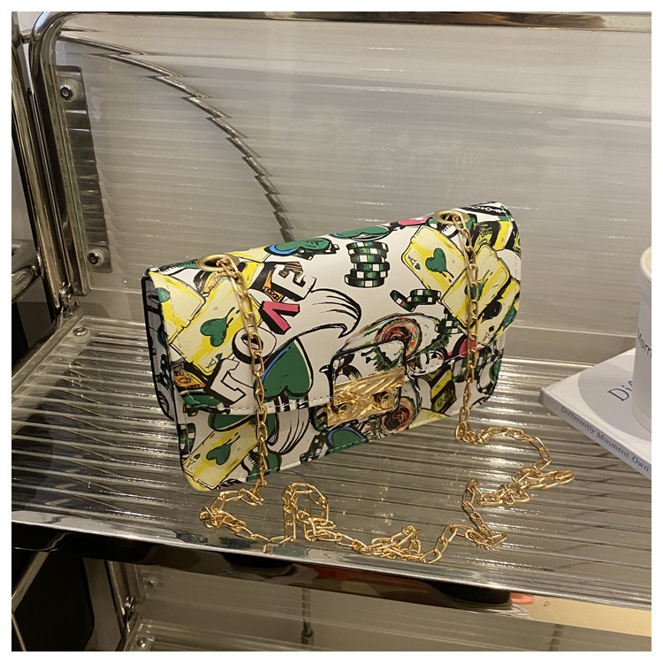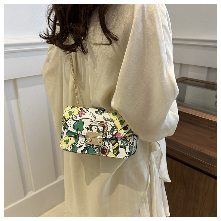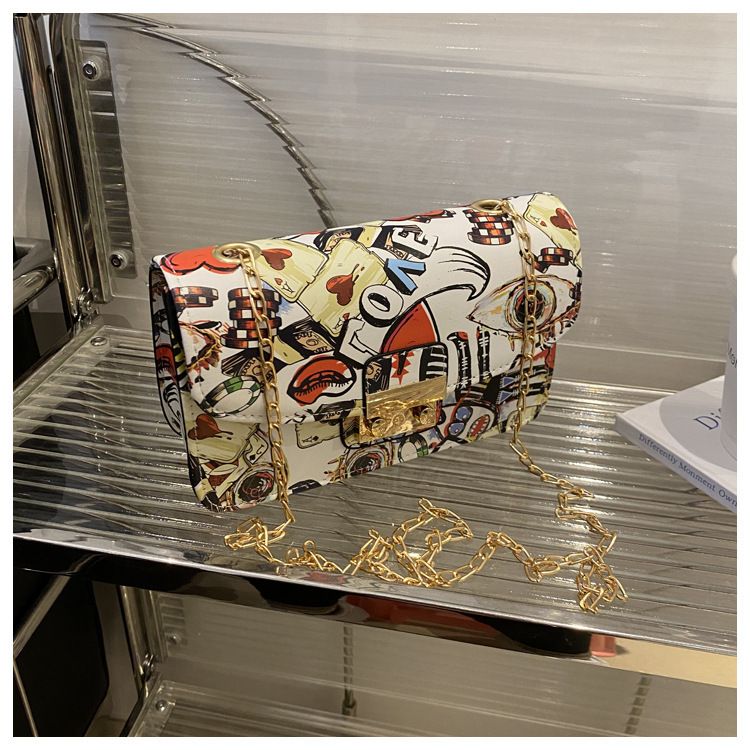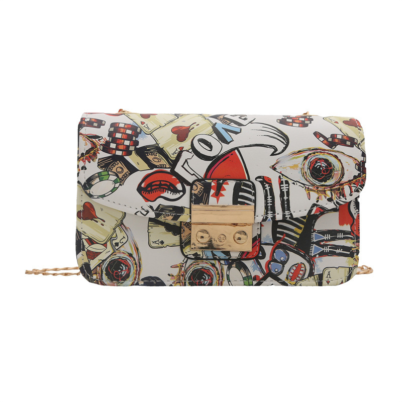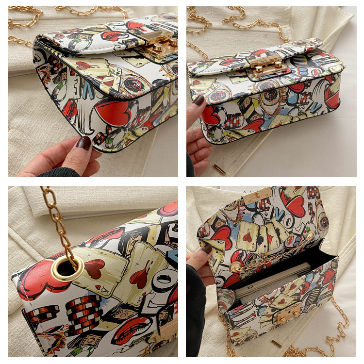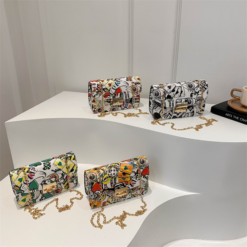 超火小众涂鸦包包女式新款流行百搭链条斜挎包时尚爆款小方包