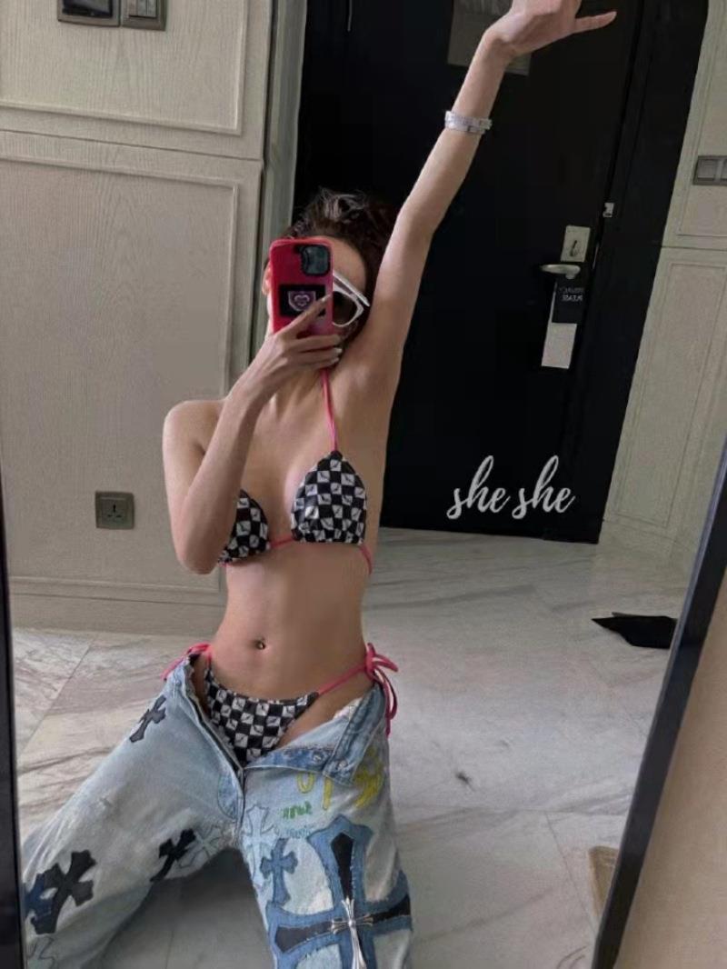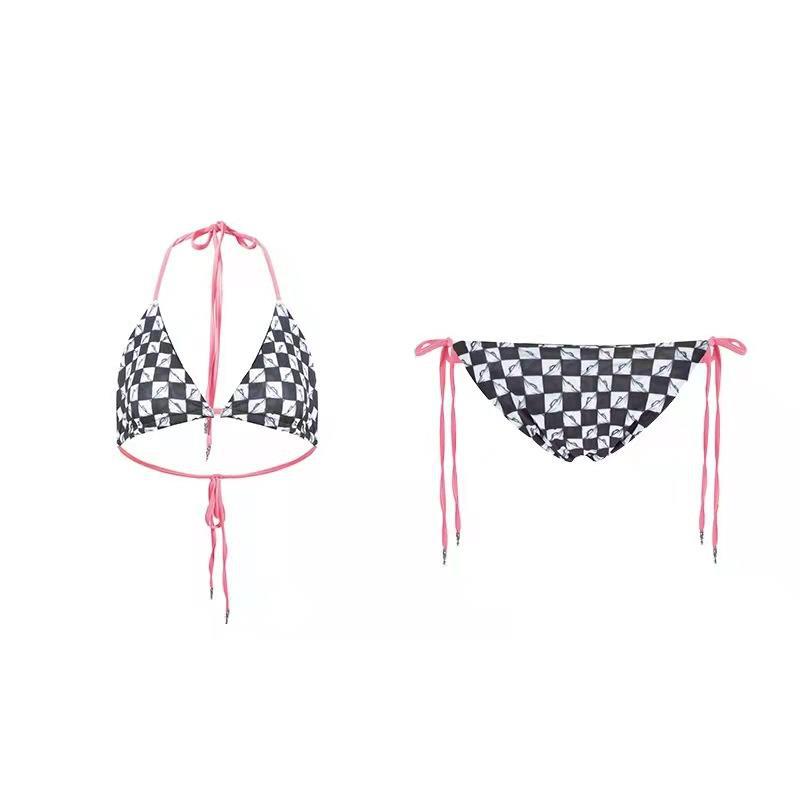 网红同款比基尼泳衣性感三角裤深V露背系带欧美出口低腰女泳衣