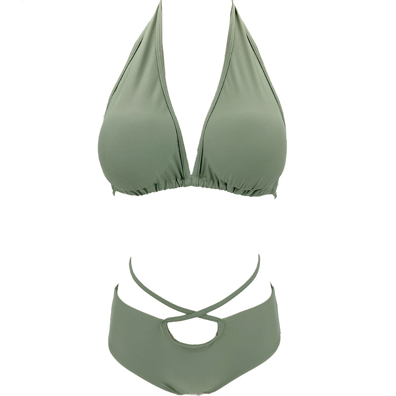 泳衣女ins风欧美辣妹军绿性感分体比基尼三点式爆款 温泉度假泳装