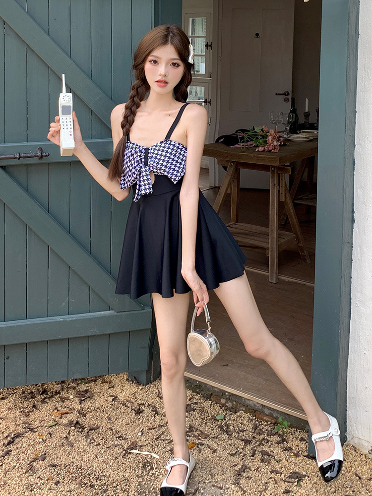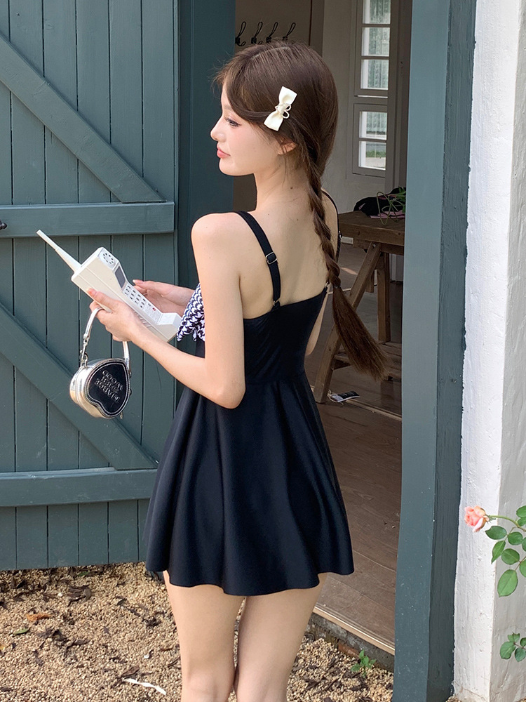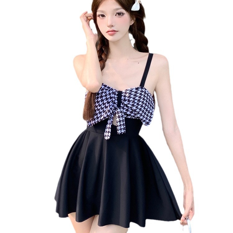 新款超仙游泳衣女连体长袖保守泡温泉遮肚显瘦学生小胸游泳装