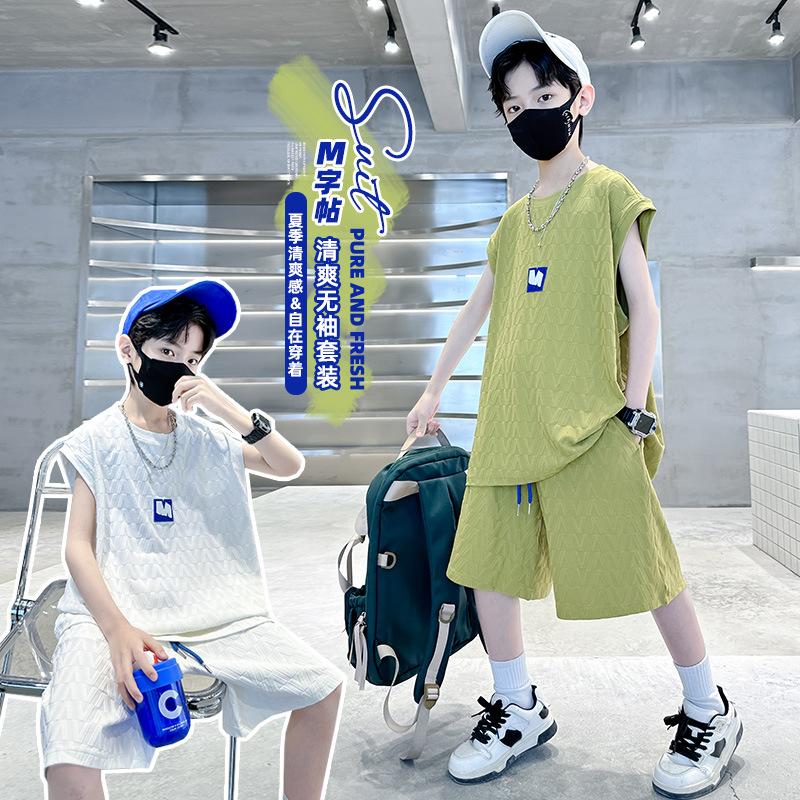夏季新大男童背心短裤套装童装儿童男孩运动无袖两件套童套装薄款