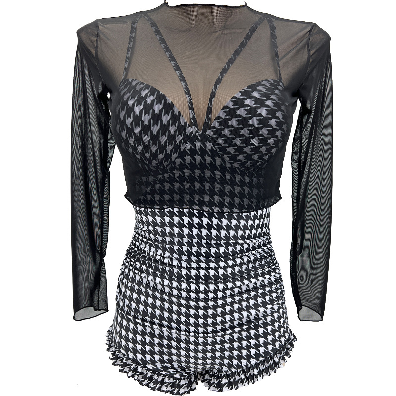 时尚简约新款女连体两件套游泳衣蕾丝罩衫长袖防嗮性感泳衣