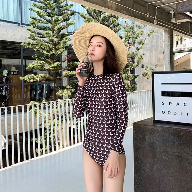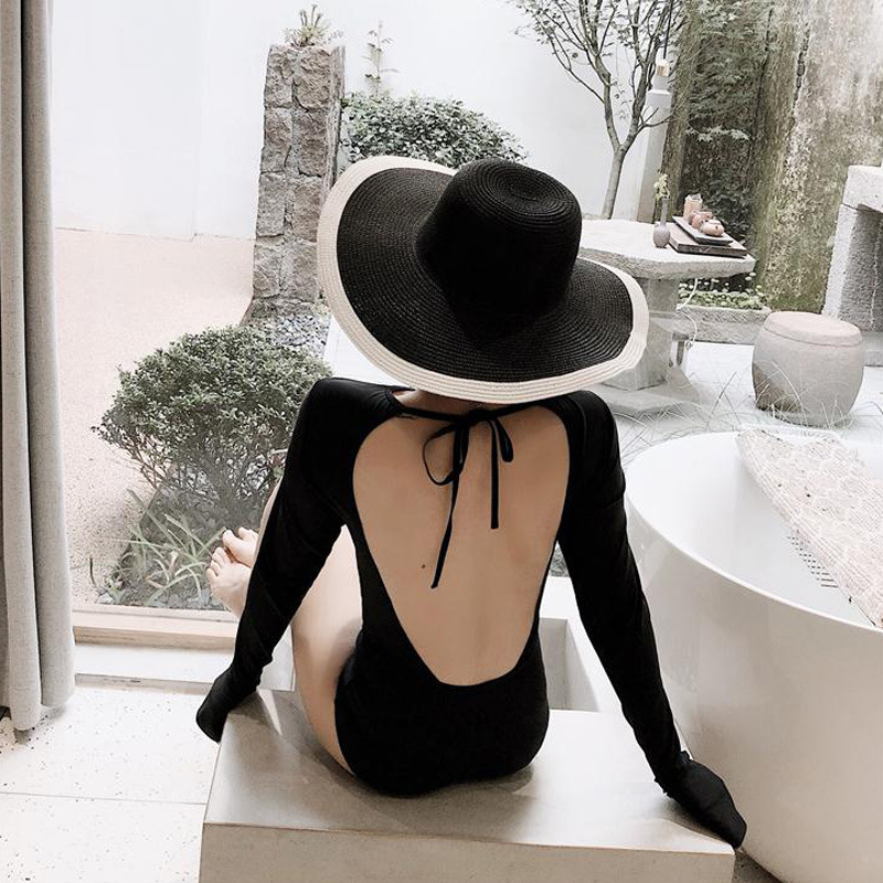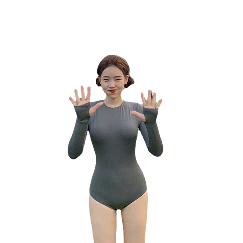 韩新款仙女范连体温泉游泳衣女遮肚显瘦保守长袖性感露背