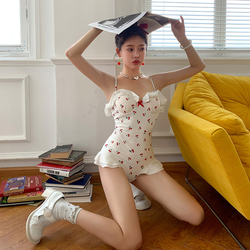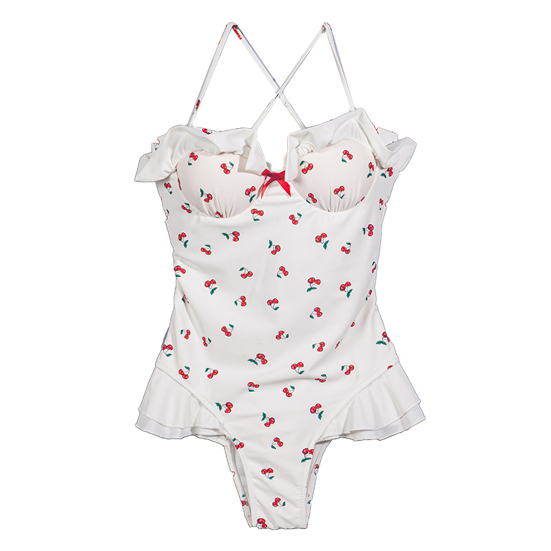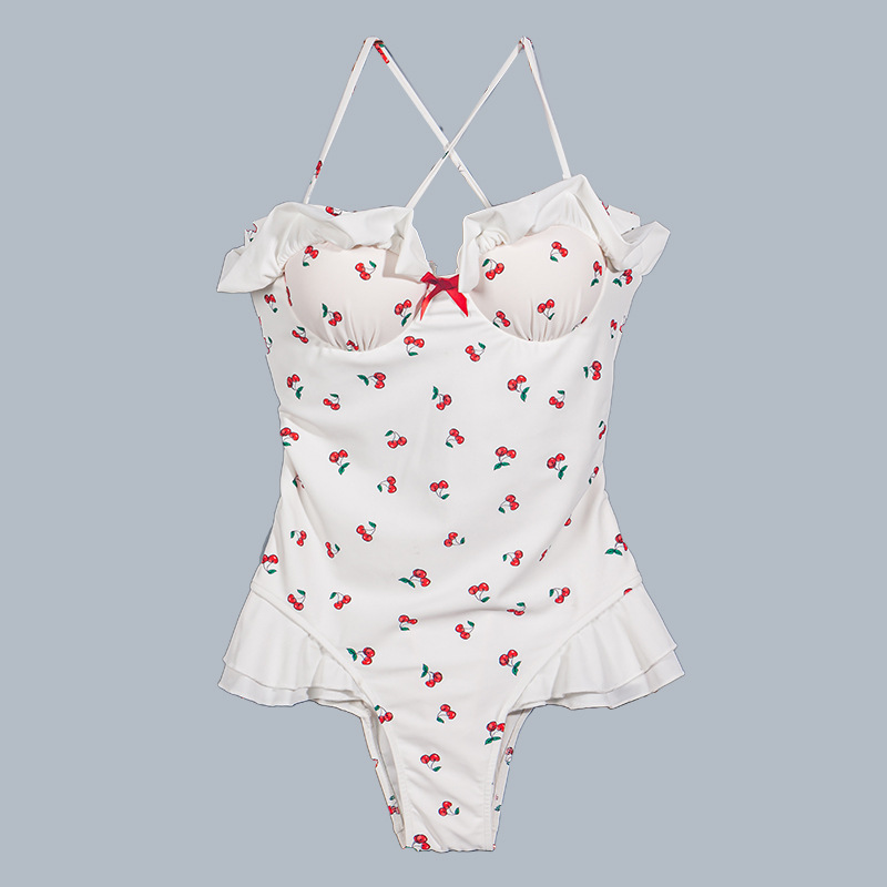 新款显瘦遮肚温泉泳装小樱桃钢托聚拢小胸显瘦泳衣女