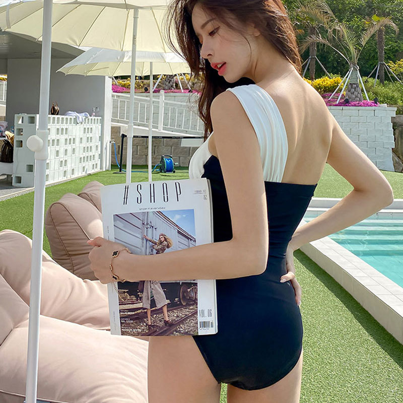 韩版ins连体泳衣女性感显瘦小胸聚拢保守遮肚度假温泉泳装比基尼