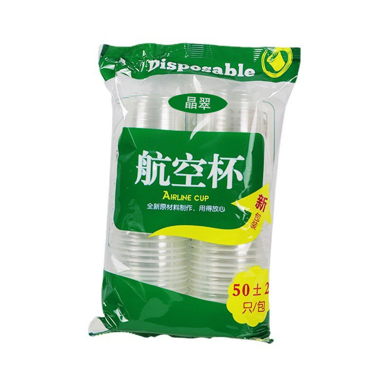 一次性塑料杯子航空杯家用水杯饮料杯酒店餐馆50只装塑料杯180ml