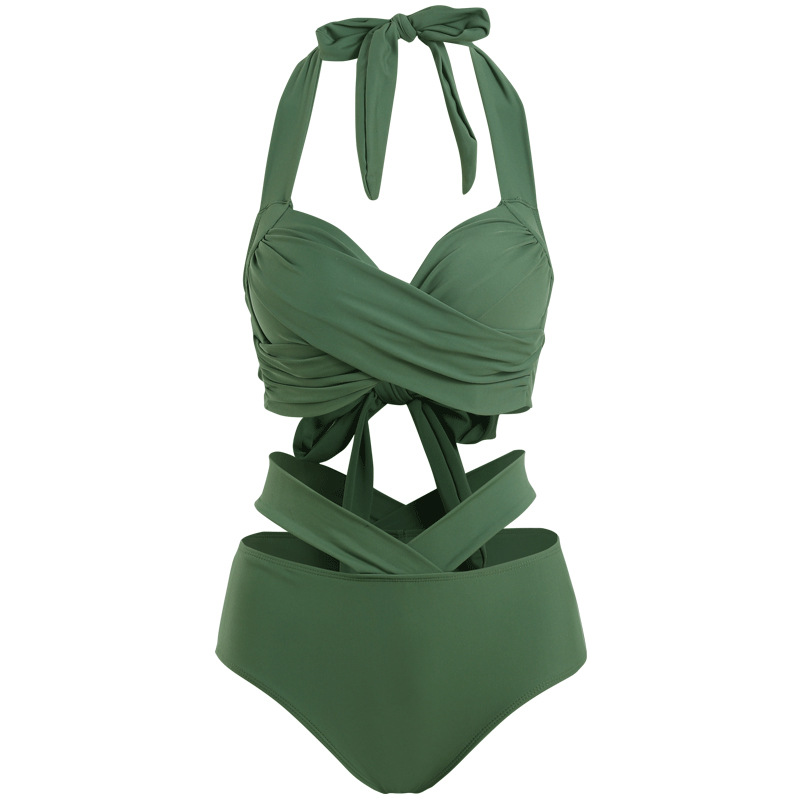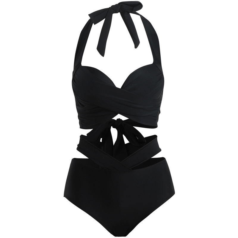 简约纯色小胸聚拢吊带性感分体泳衣韩国同款紧身女士泳装