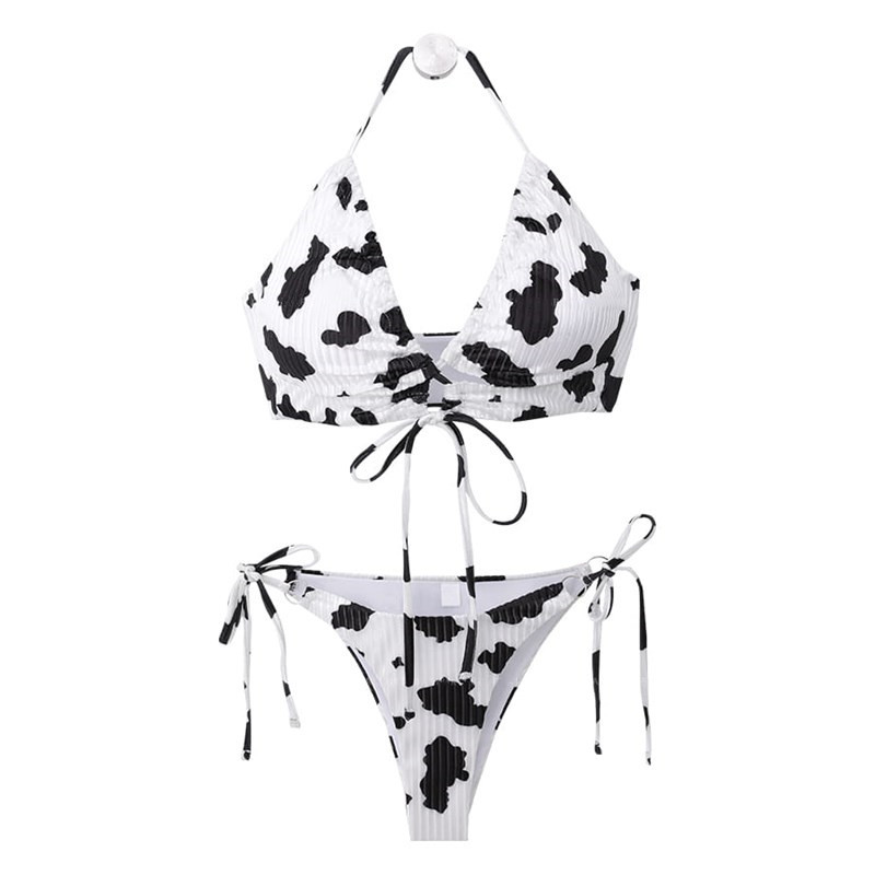 出口性感分体三点式比基尼分体泳衣 条纹面料系脖低腰裤欧美性感