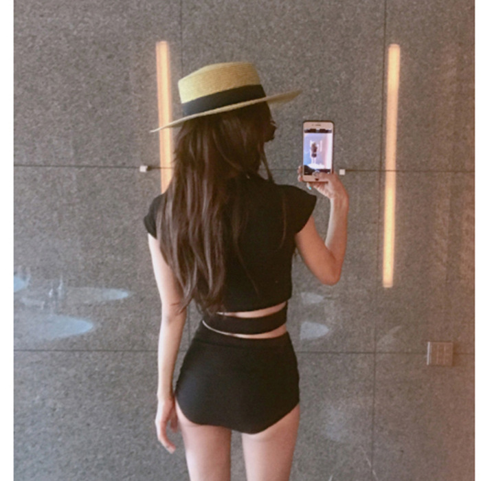泳衣新款短袖高腰平角裤分体两件套韩国泳衣女温泉小香风泳装