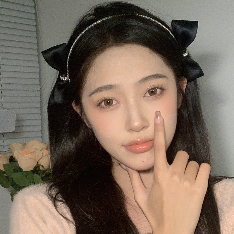 韩国水钻黑色双侧边蝴蝶结发箍女chic风气质网红甜美外出百搭发饰