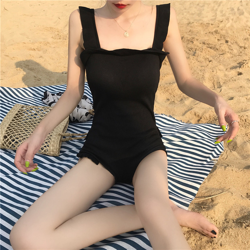 夏季新款女装韩版木耳边吊带连体裤连体性感露背平角泳衣