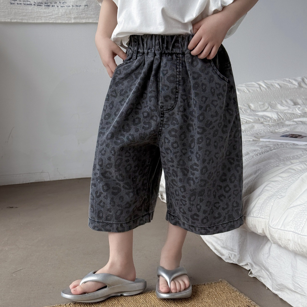 2025美式豹纹五分裤牛仔裤男童夏季新款短裤洋气男孩中小童复古