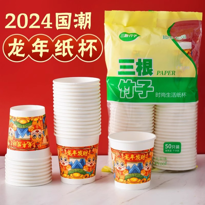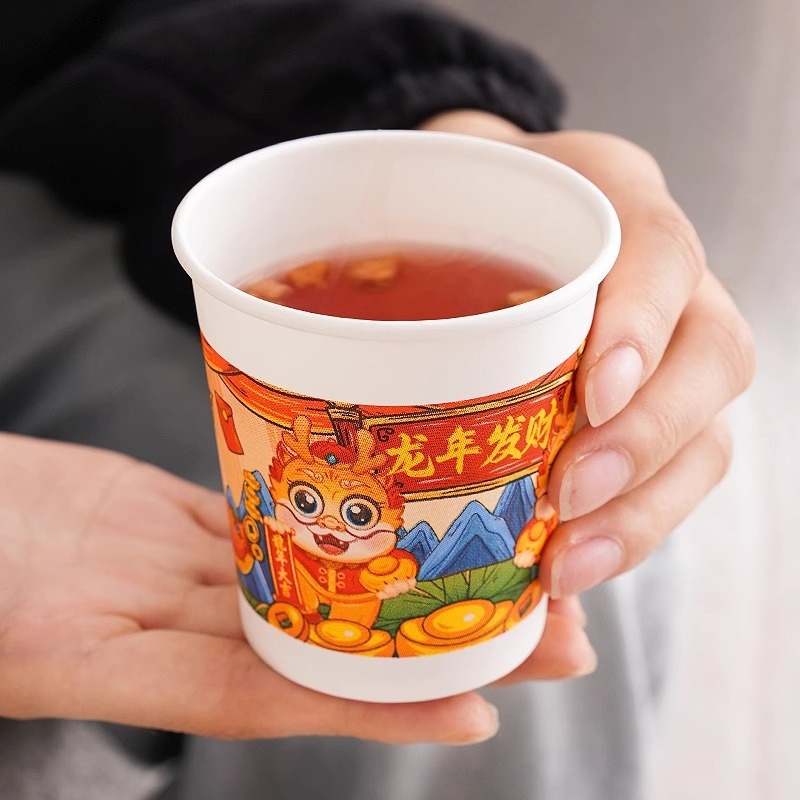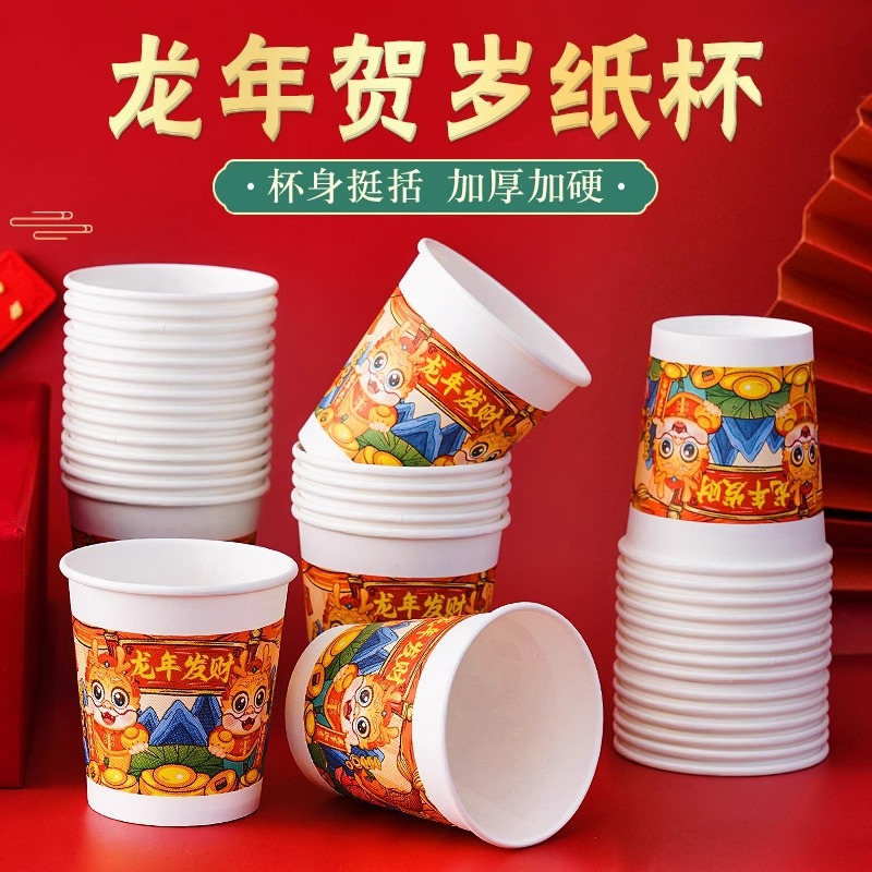 新年贺岁春节龙年大吉 龙年发财加厚纸杯 一次性纸杯