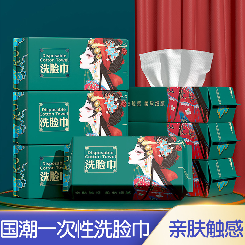 国潮洗脸巾纯棉一次性棉柔巾不掉絮擦脸美容院洁面巾