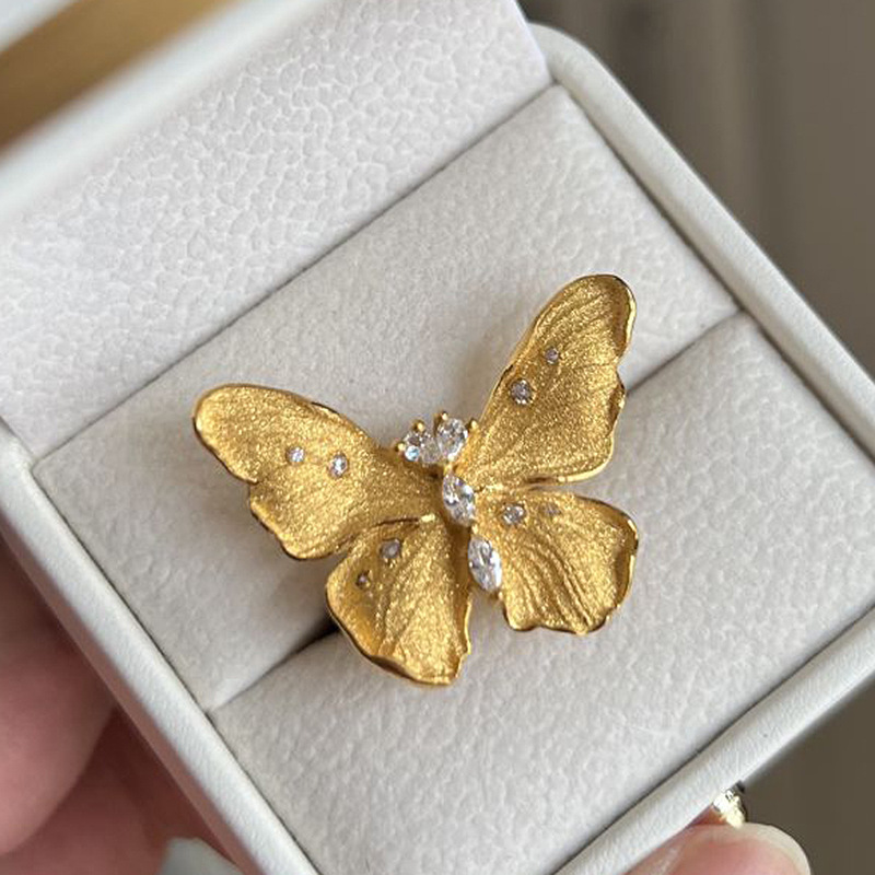 小红书爆款蝴蝶戒指女新款古法重工拉丝点钻小百花