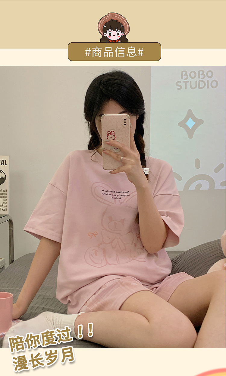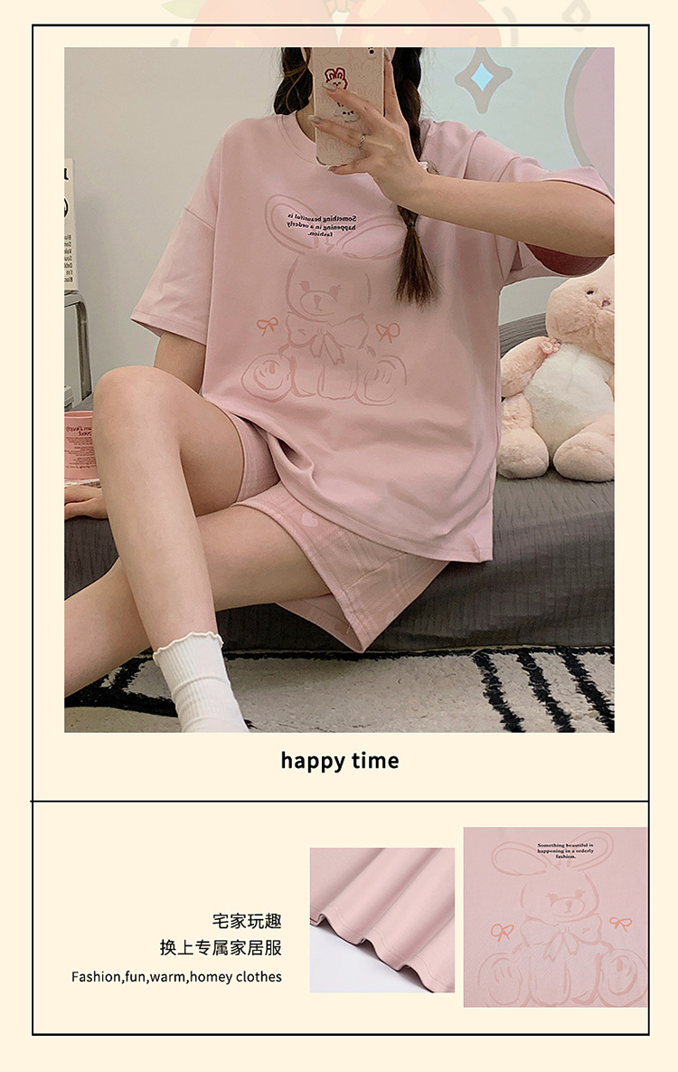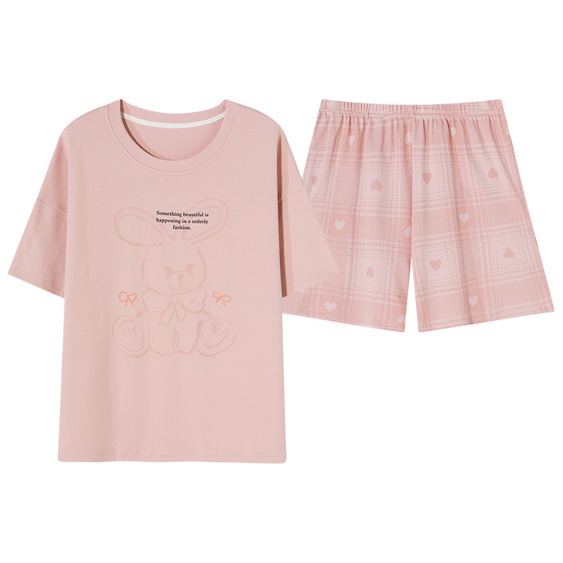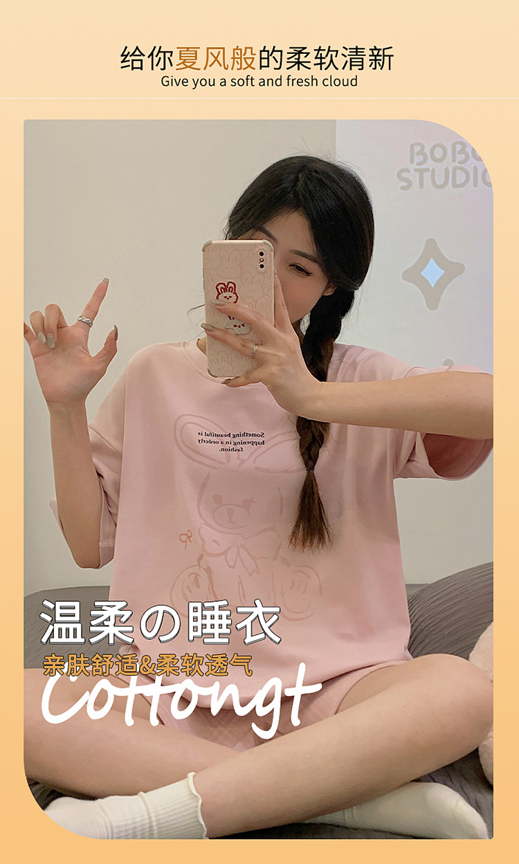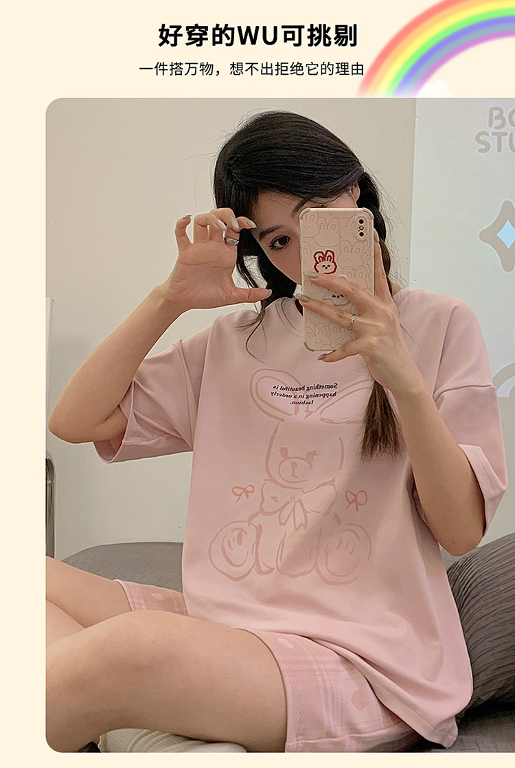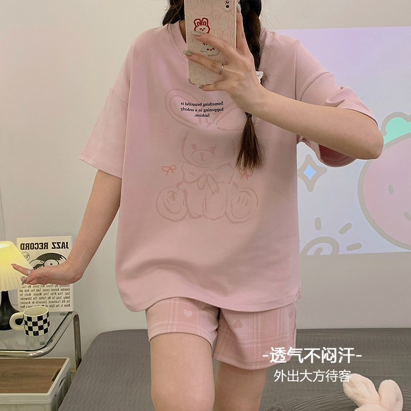 年新款睡衣女夏季纯棉短袖短裤可爱少女士学生套头家居服夏天