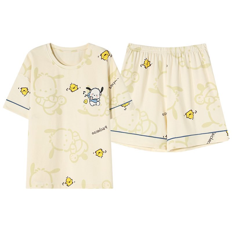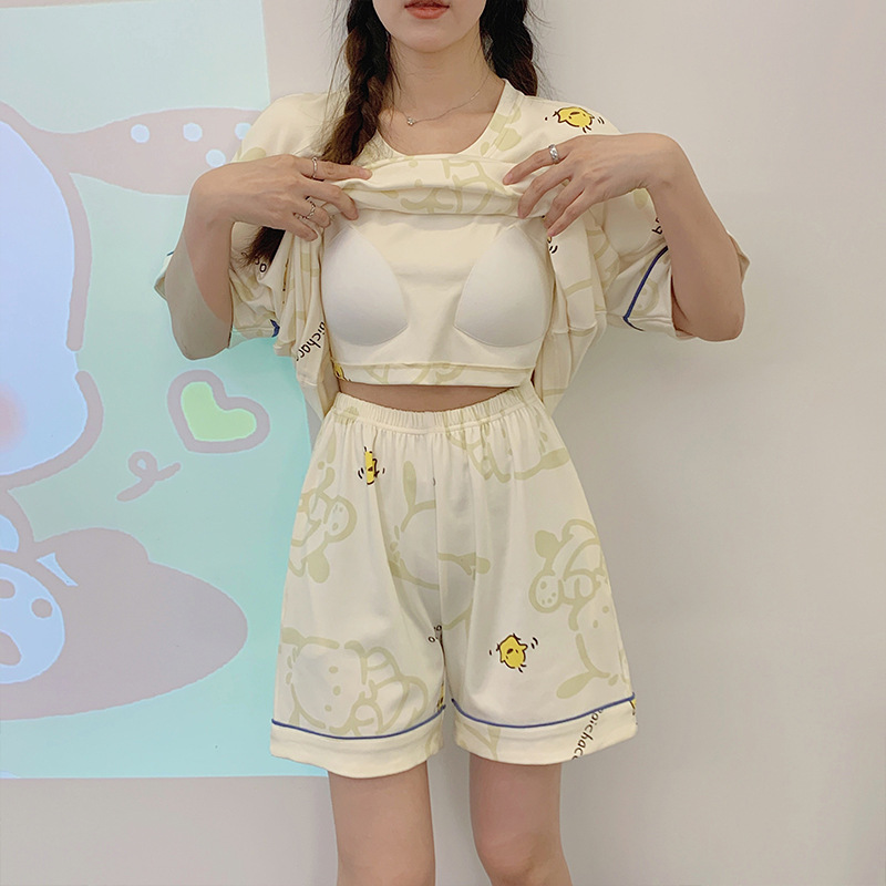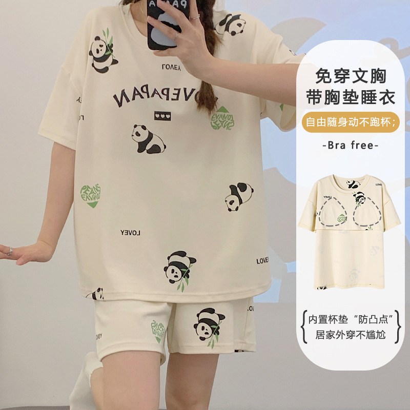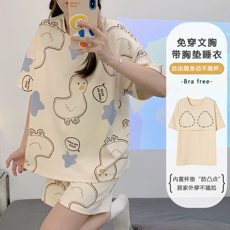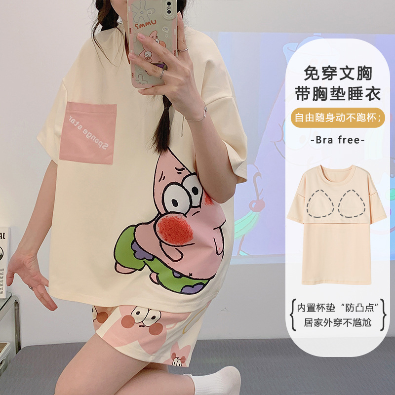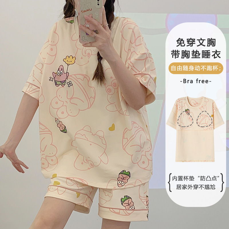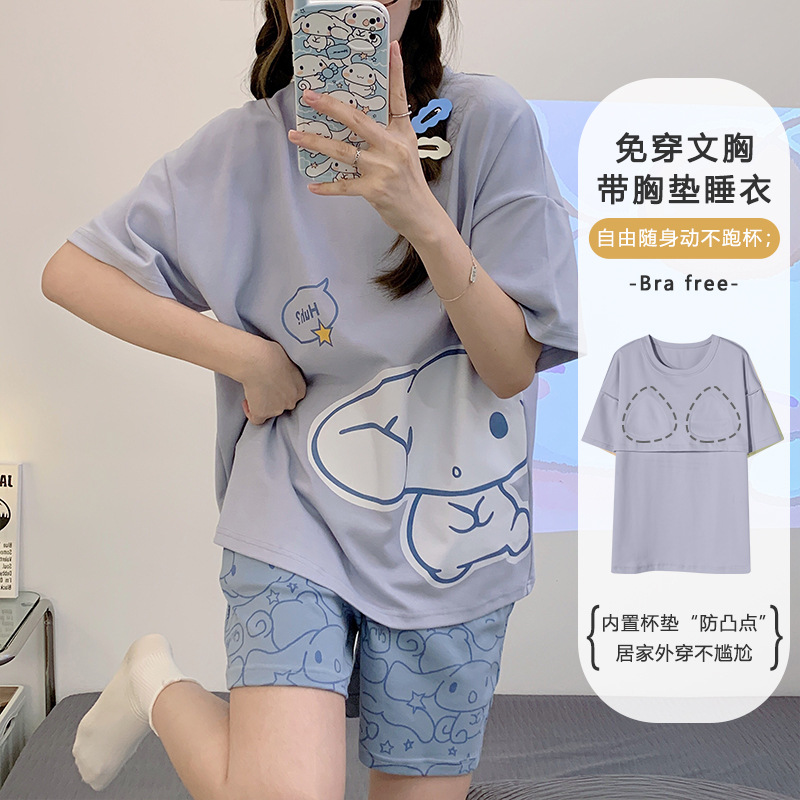 带胸垫睡衣女夏季纯棉短袖可外穿休闲少女生卡通家居服年新款