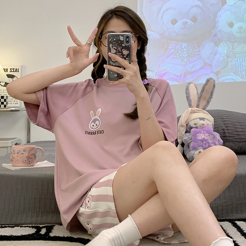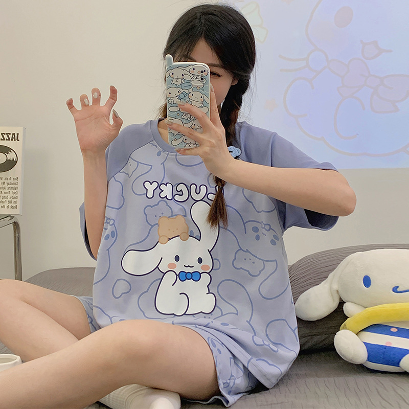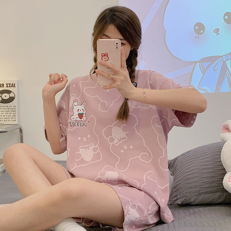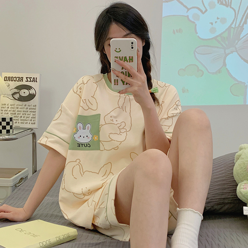 睡衣女夏季纯棉短袖年新款休闲卡通少女士学生家居服夏天套装