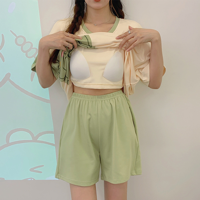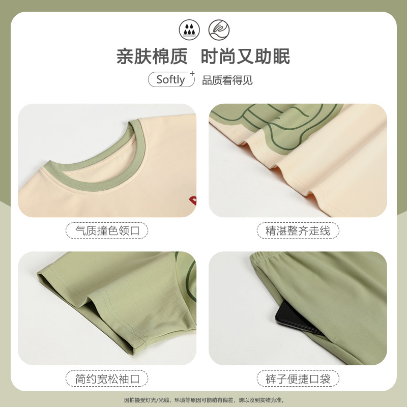 带胸垫睡衣女夏季纯棉短袖年新款少女学生可爱卡通套头家居服