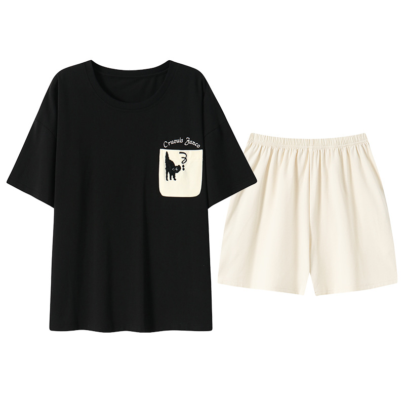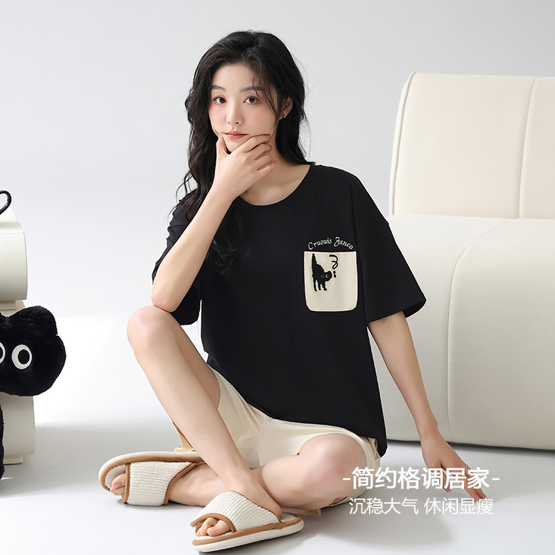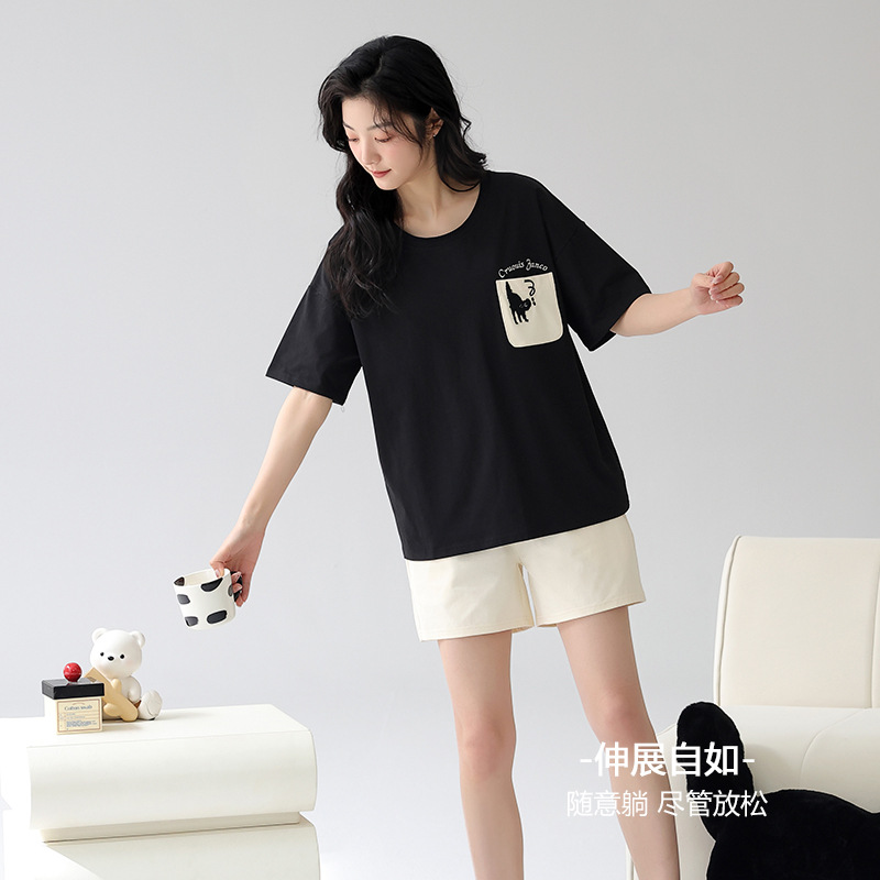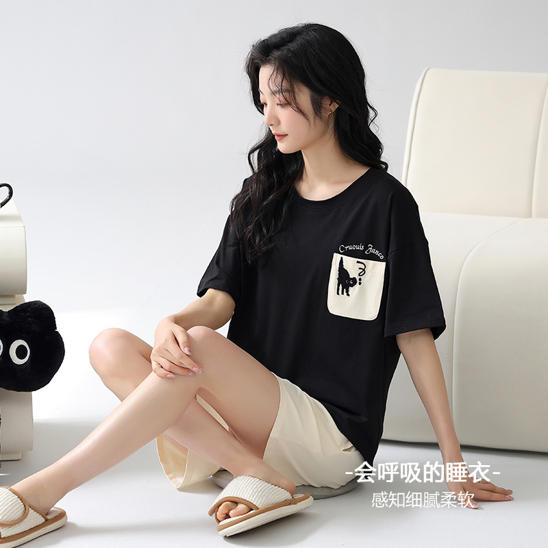 睡衣女夏季薄款纯棉圆领短袖短裤甜美可爱套头全棉外穿家居服套装