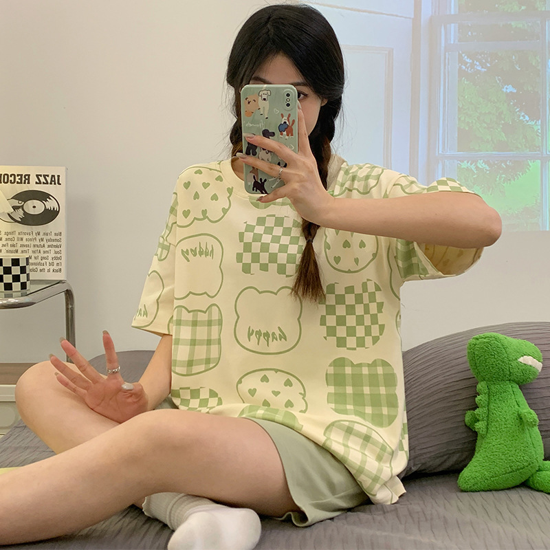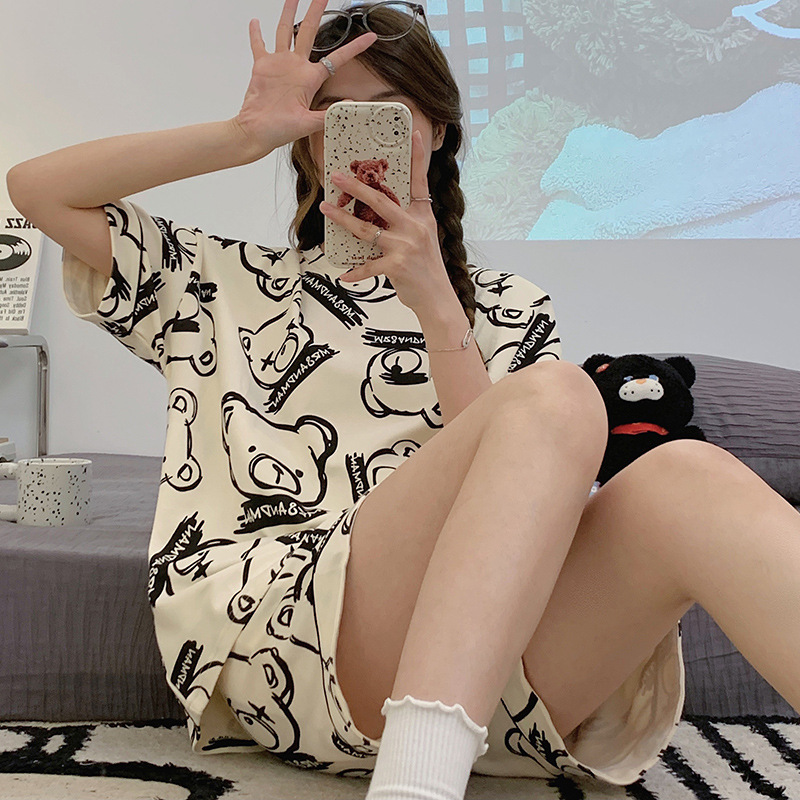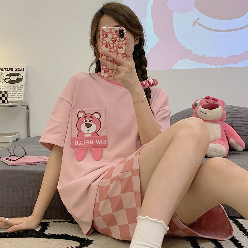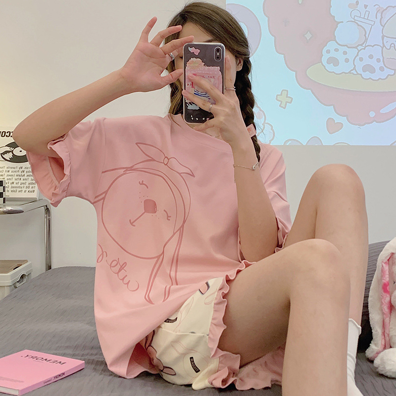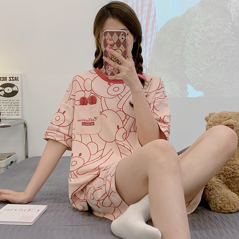 纯棉睡衣女夏季短袖短裤休闲少女士卡通圆领家居服夏天年新款