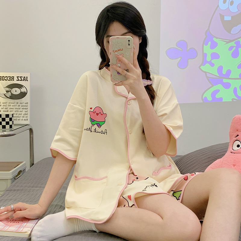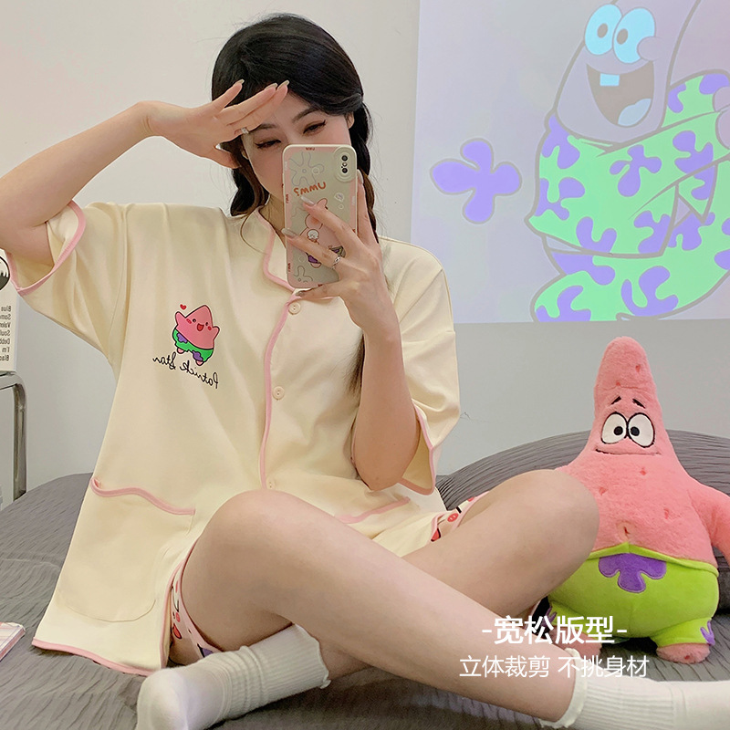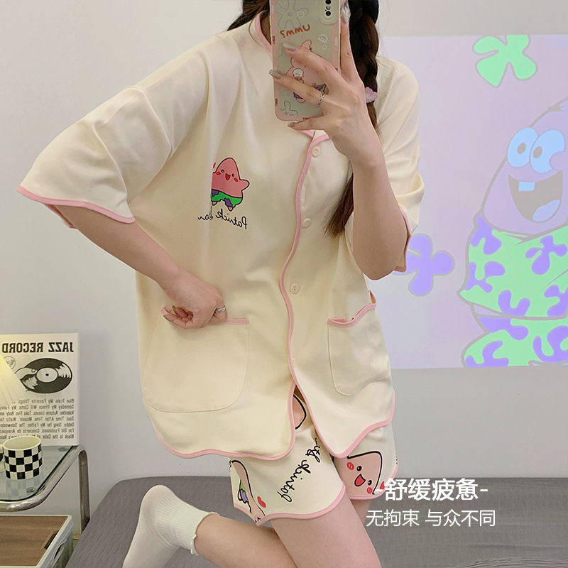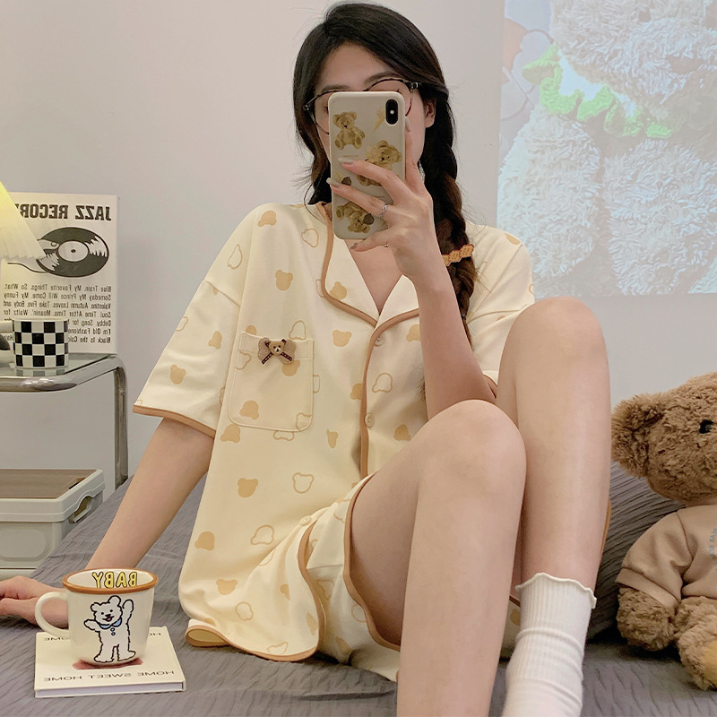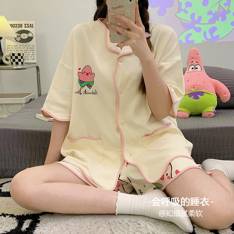 睡衣女士夏季纯棉短袖年新款甜美卡通可爱开衫家居服外穿套装