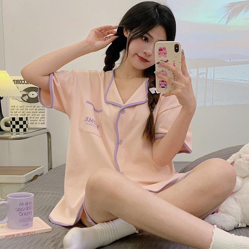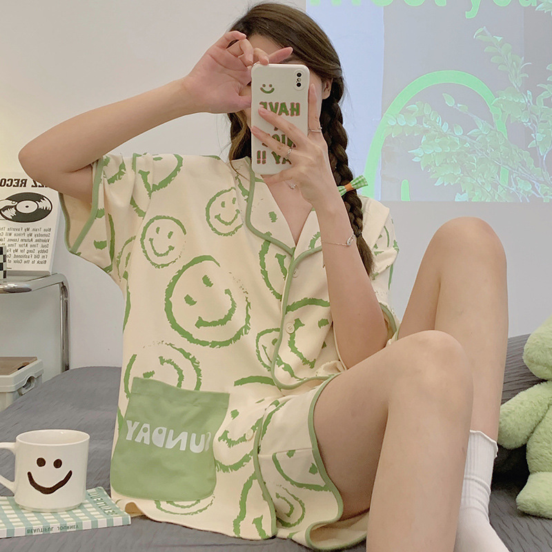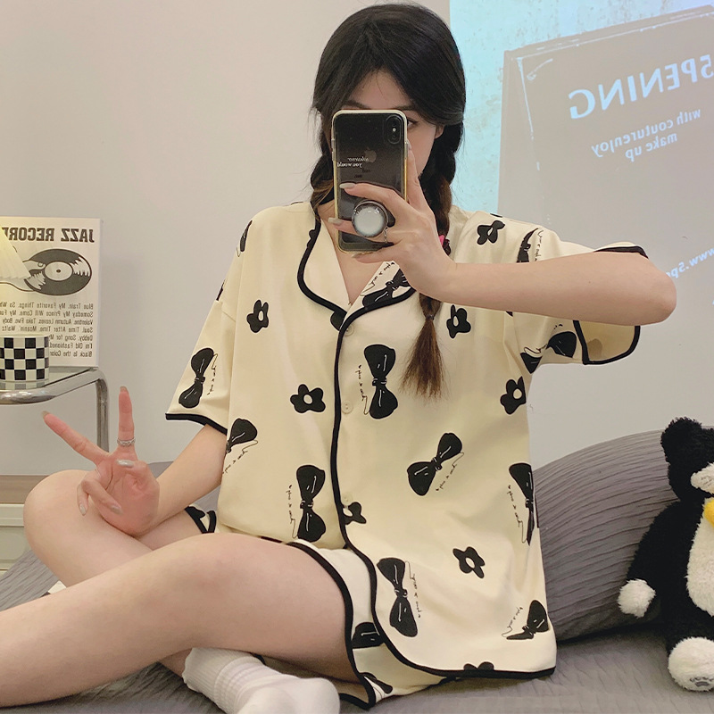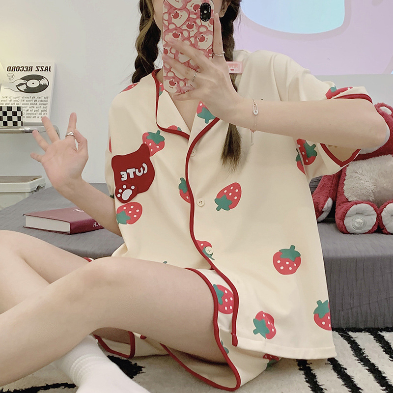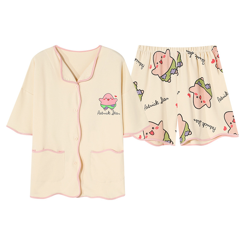 睡衣女士夏季纯棉短袖年新款甜美卡通可爱开衫家居服外穿套装