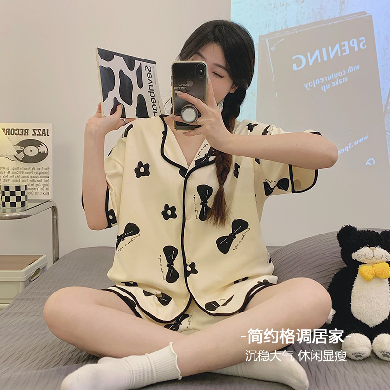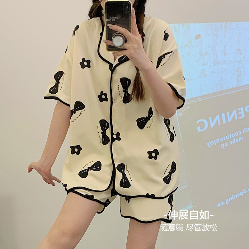 年新款睡衣女夏季纯棉短袖网红少女生甜美开衫大码家居服夏天