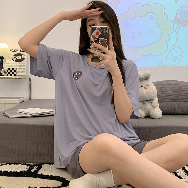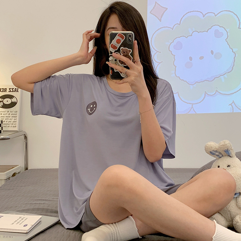 带胸垫睡衣女夏季纯棉短袖可外穿年新款少女士休闲圆领家居服