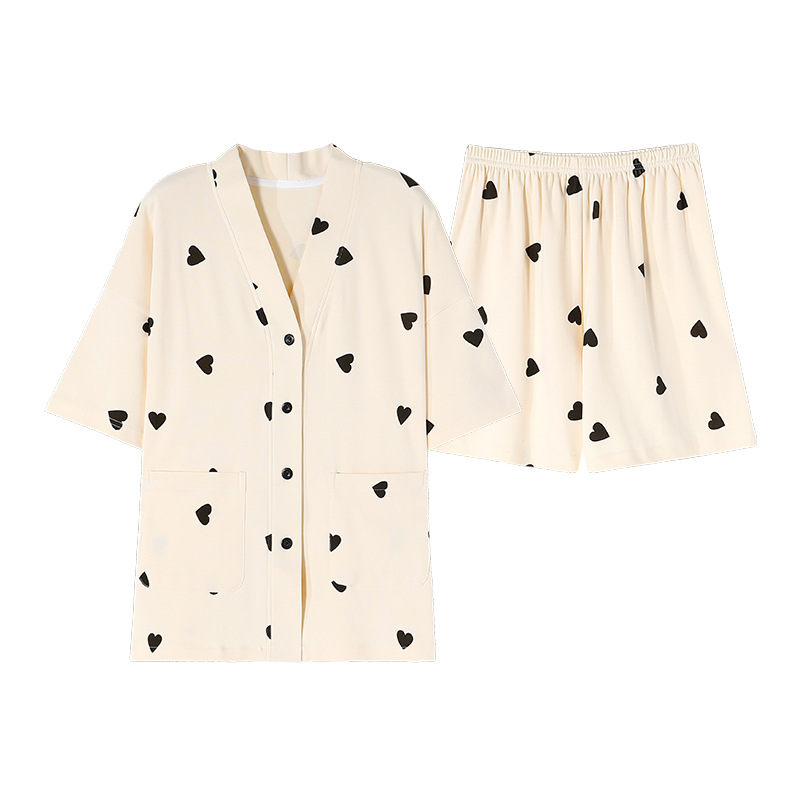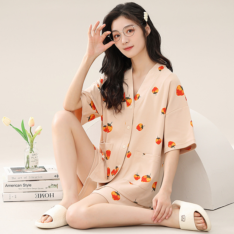 年新款睡衣女士夏季纯棉短袖女式甜美宽松开衫家居服夏天套装