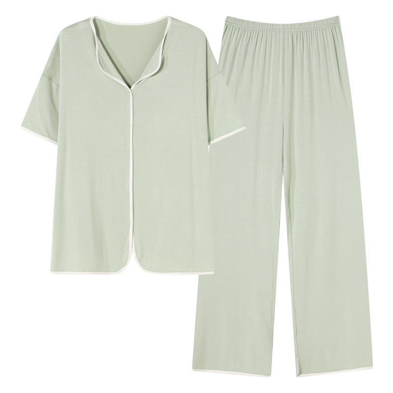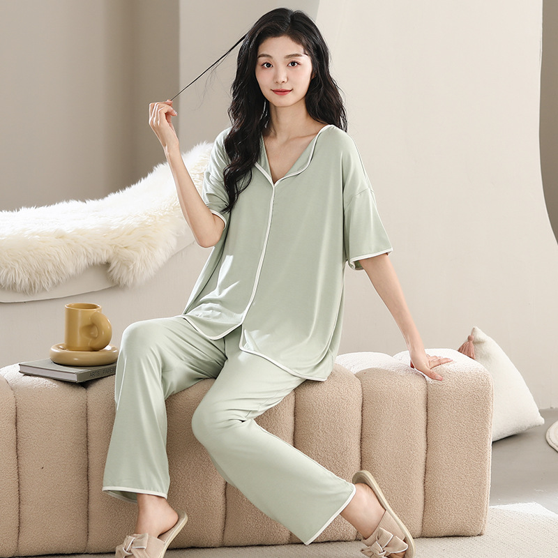 带胸垫睡衣女夏季凉感莫代尔短袖长裤休闲少女士外穿防凸点家居服