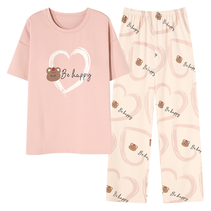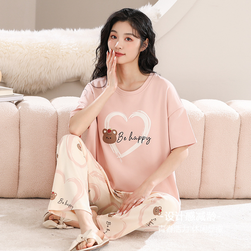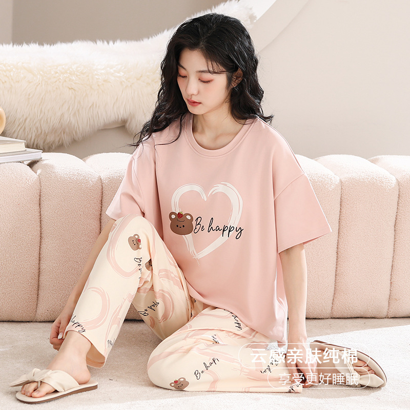 带胸垫一体睡衣女士夏季纯棉短袖长裤年新款可外穿家居服套装