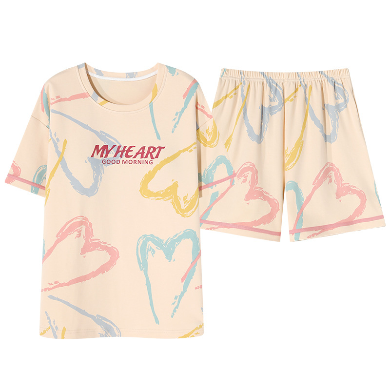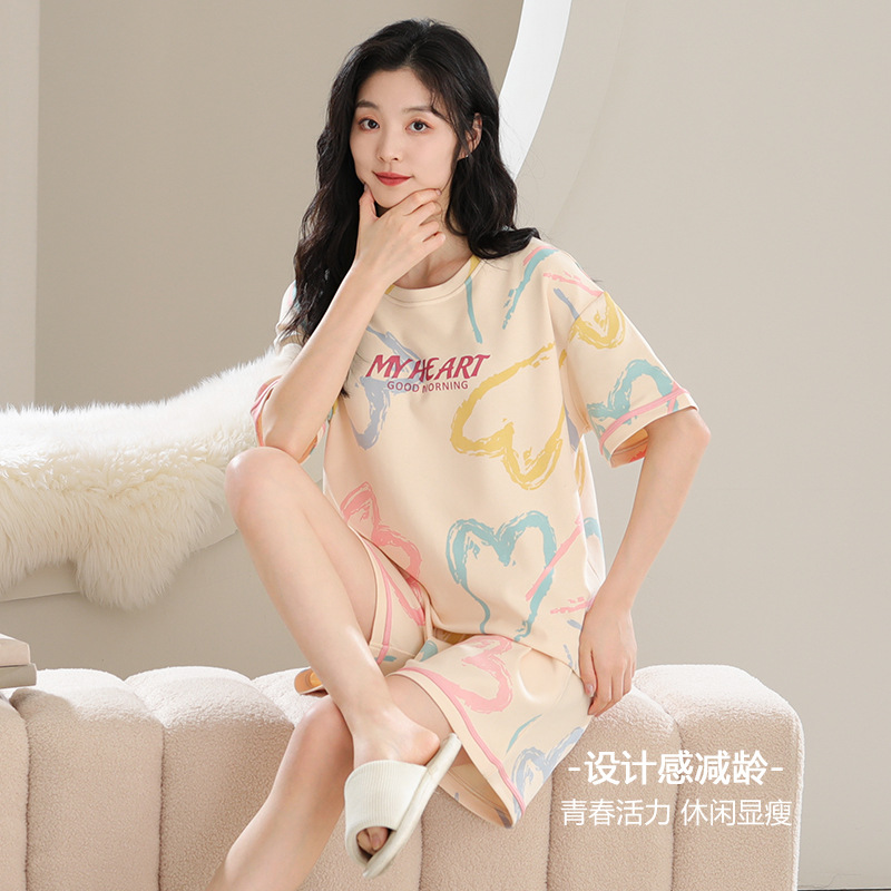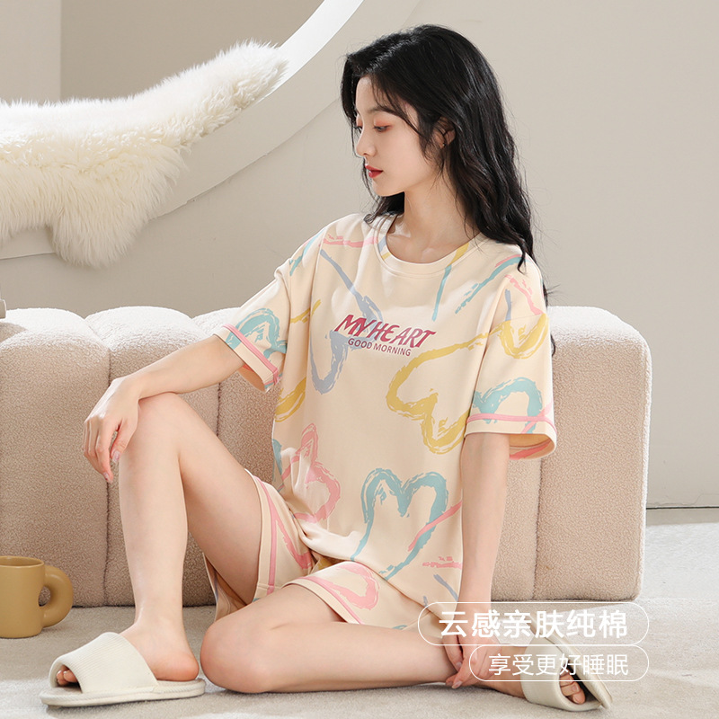 年新款睡衣女士夏季纯棉短袖短裤带胸垫可外穿防凸家居服夏天