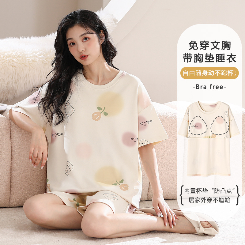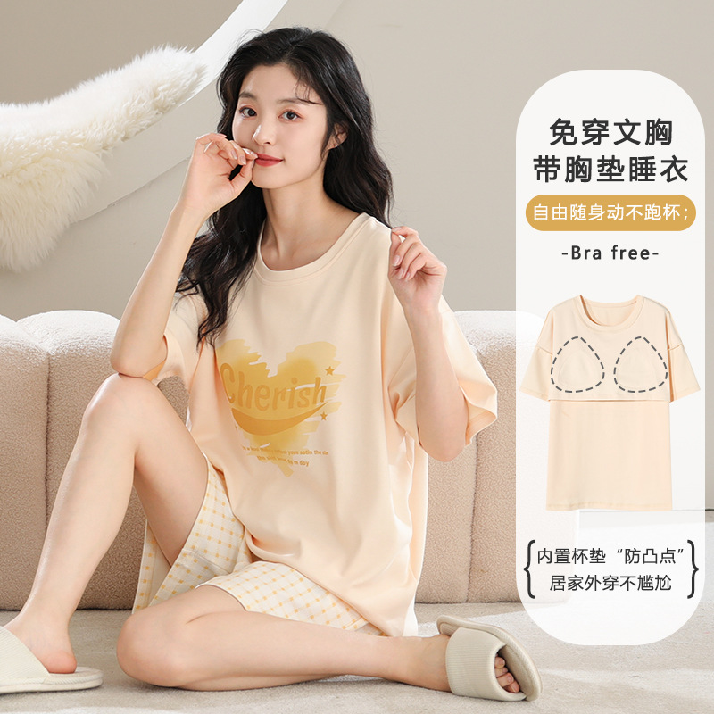 带胸垫睡衣女夏季纯棉短袖短裤休闲少女士可外穿家居服年新款